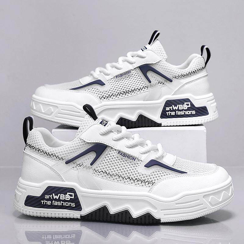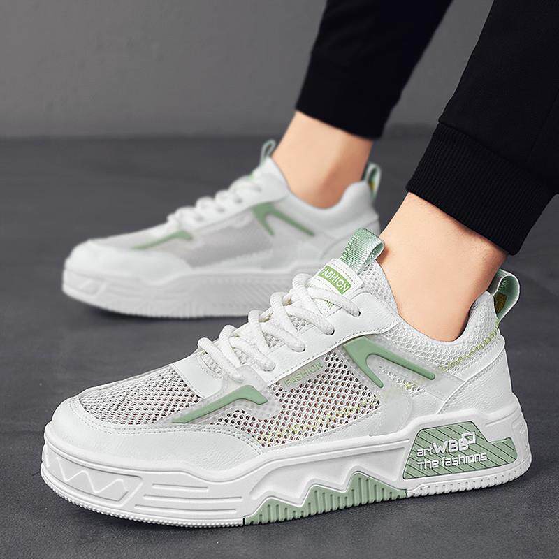 板鞋男夏季透气青少年男防滑底网面休闲鞋初中学生厚底镂空平板鞋
