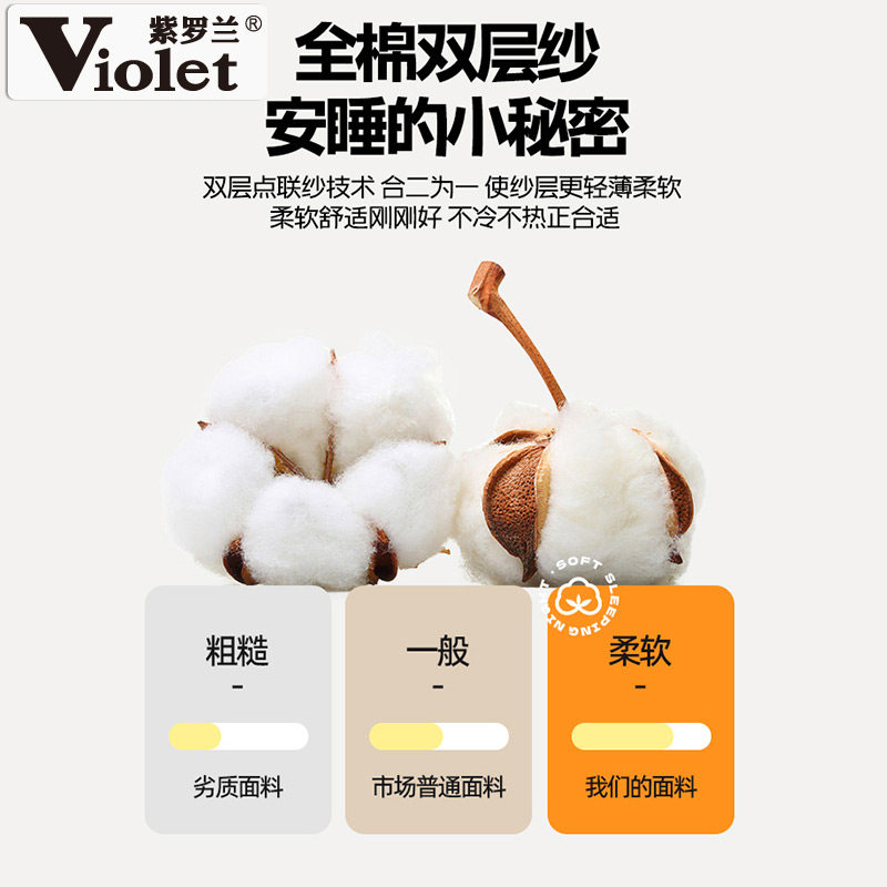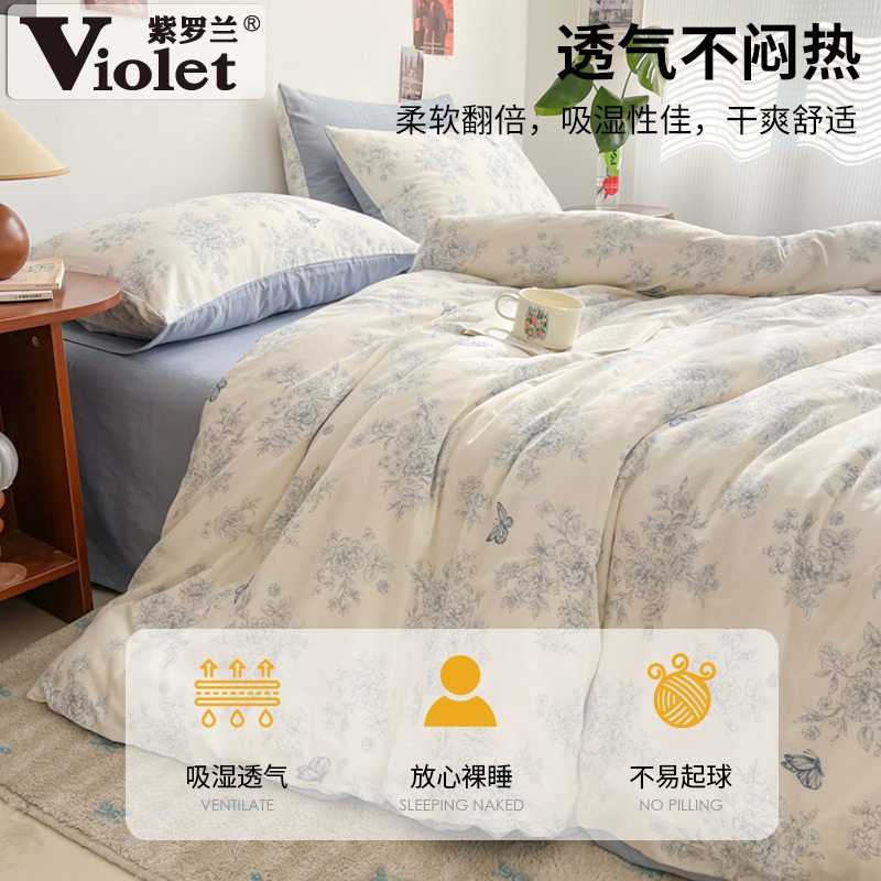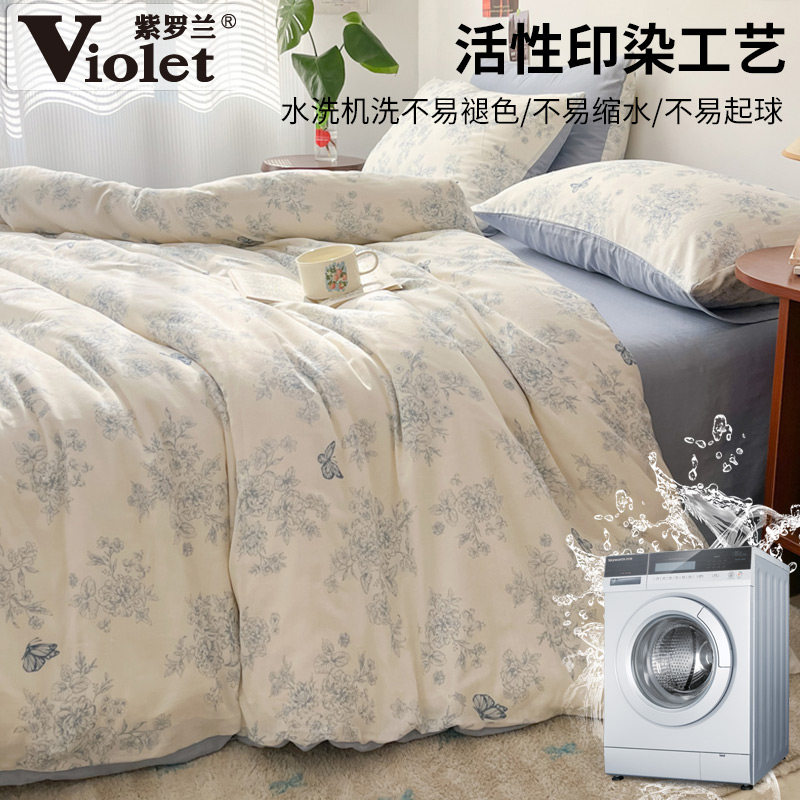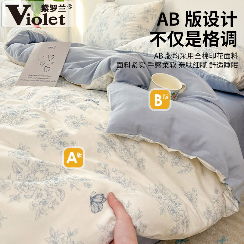 紫罗兰2026新款全棉小清新双层纱印花四件套纯棉床单被套轻奢床品
