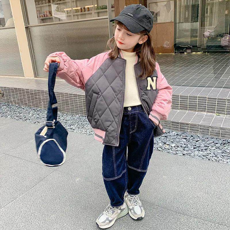 中大童秋冬季棒球服外套男童二棉女童上衣薄款2026新款夹棉上衣潮