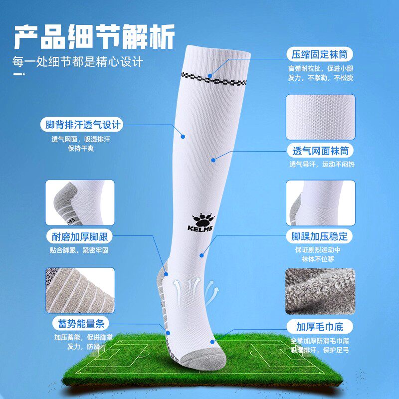 KELME卡尔美足球袜男长筒儿童小学生毛巾底专业比赛防滑运动长袜