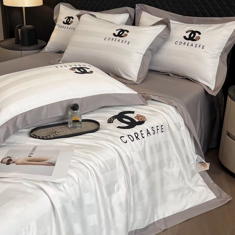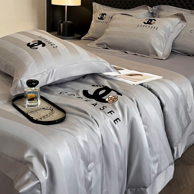 夏天冰丝夏凉被四件套轻奢高级感床笠款可机洗空调被双人冷气被芯