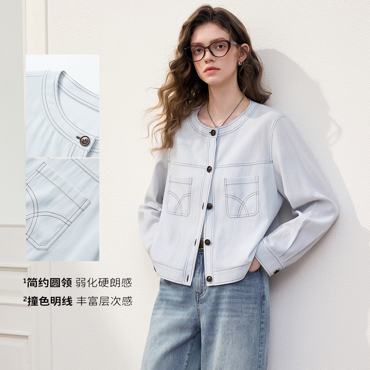 KBNE宽松短款圆领小个子外套女装2026夏季新款高级感薄款独特夹克