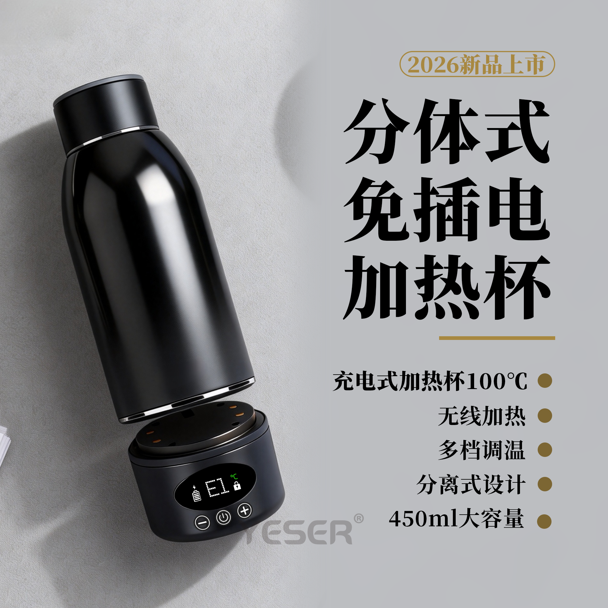 便携式锂电加热杯分体式无线烧水杯智能316不锈钢恒温保温杯户外