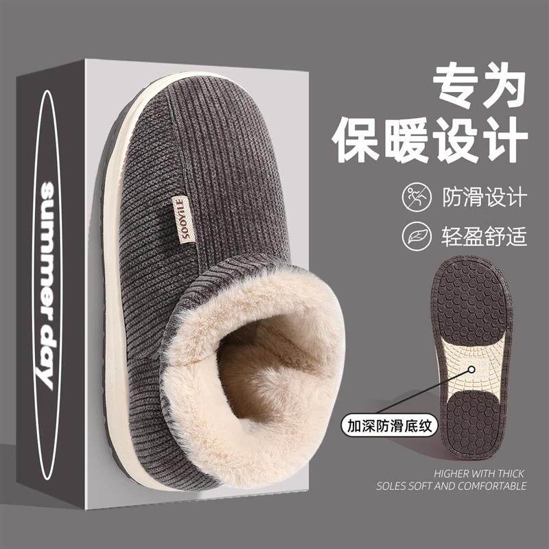 棉拖鞋男士冬季全包跟室内家居老人防滑厚底加绒毛毛保暖棉鞋女款