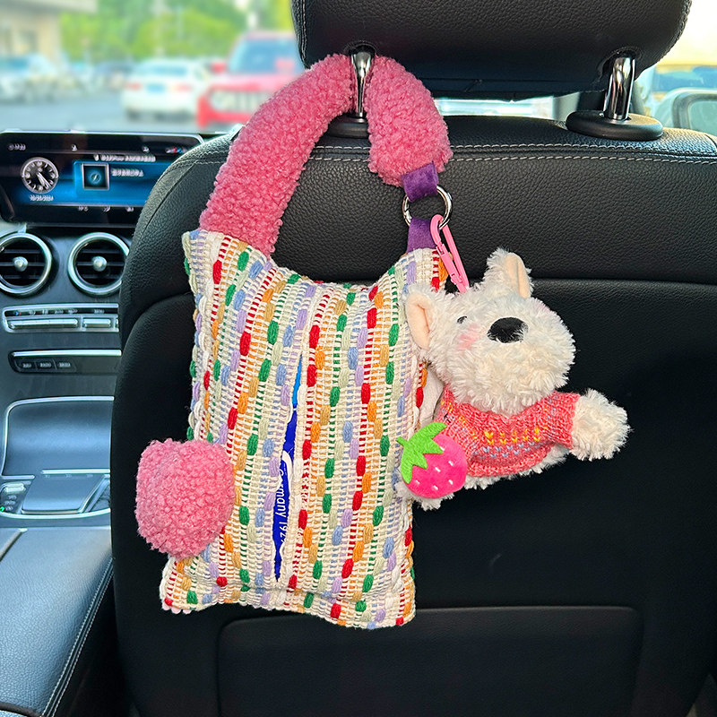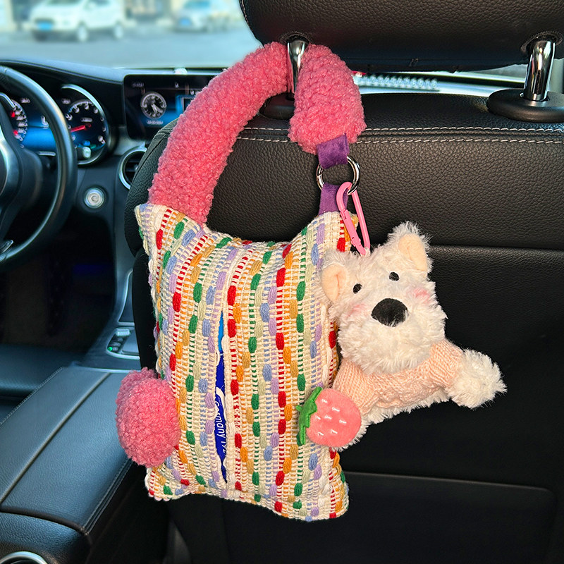 车载纸巾盒挂式可爱西高地汽车椅背纸巾挂袋车用高级感创意抽纸盒