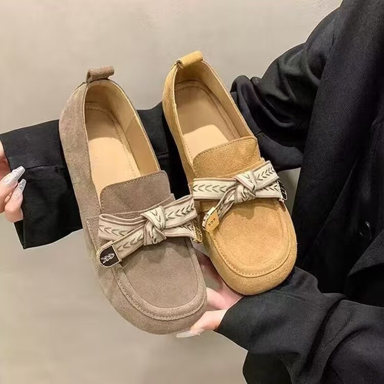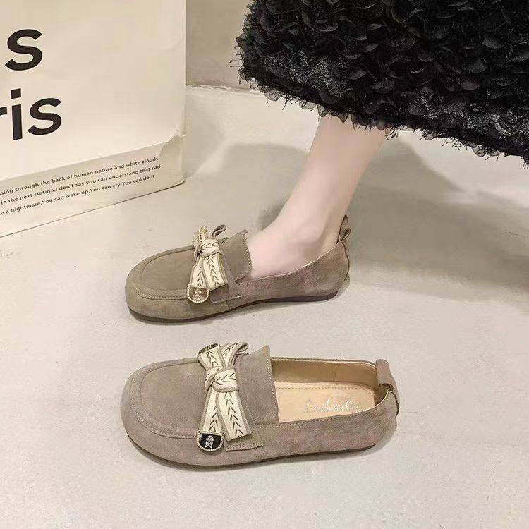 品牌蝴蝶结平底单鞋女一脚蹬软底豆豆鞋2025新款百搭勃肯乐福鞋