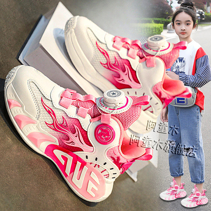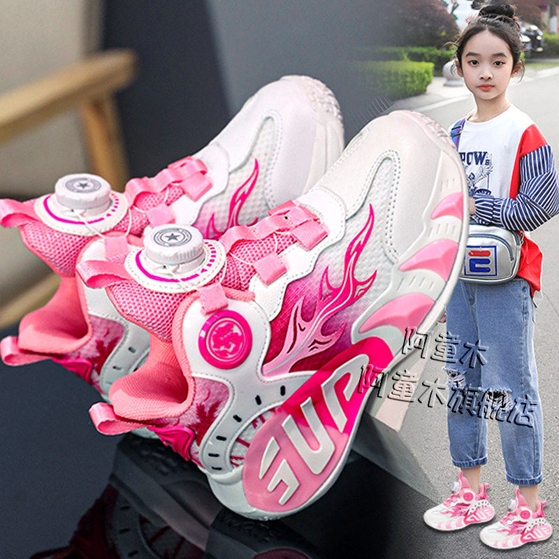 女童鞋2026新款夏季红色网面运动鞋儿童轻便软底篮球鞋女孩运动鞋