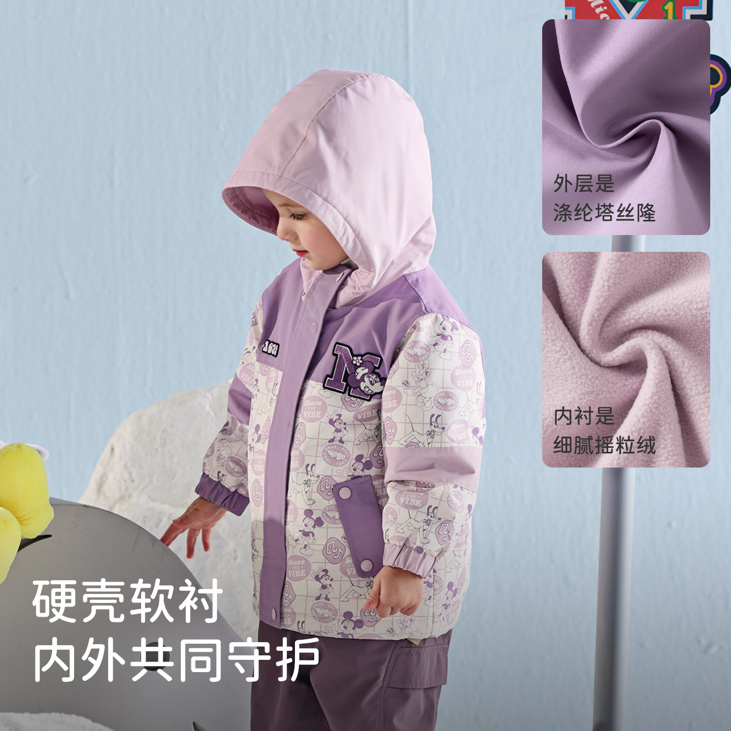 迪士尼IP戴维贝拉女童外套2026新款儿童三防加绒厚衣服宝宝春装