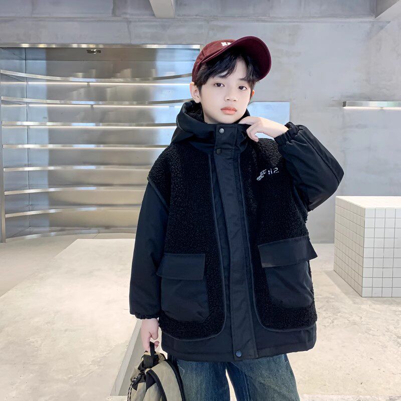 男童加厚外套秋冬款2026新款儿童羊羔绒毛毛衣中大童冬季夹棉棉衣
