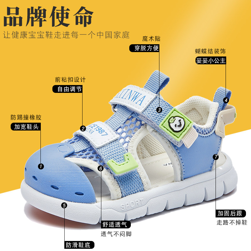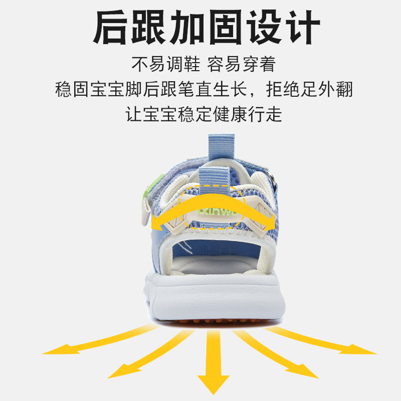 开心娃2022健康功能学步男女童凉鞋包头包跟机能鞋魔术贴宝宝鞋子