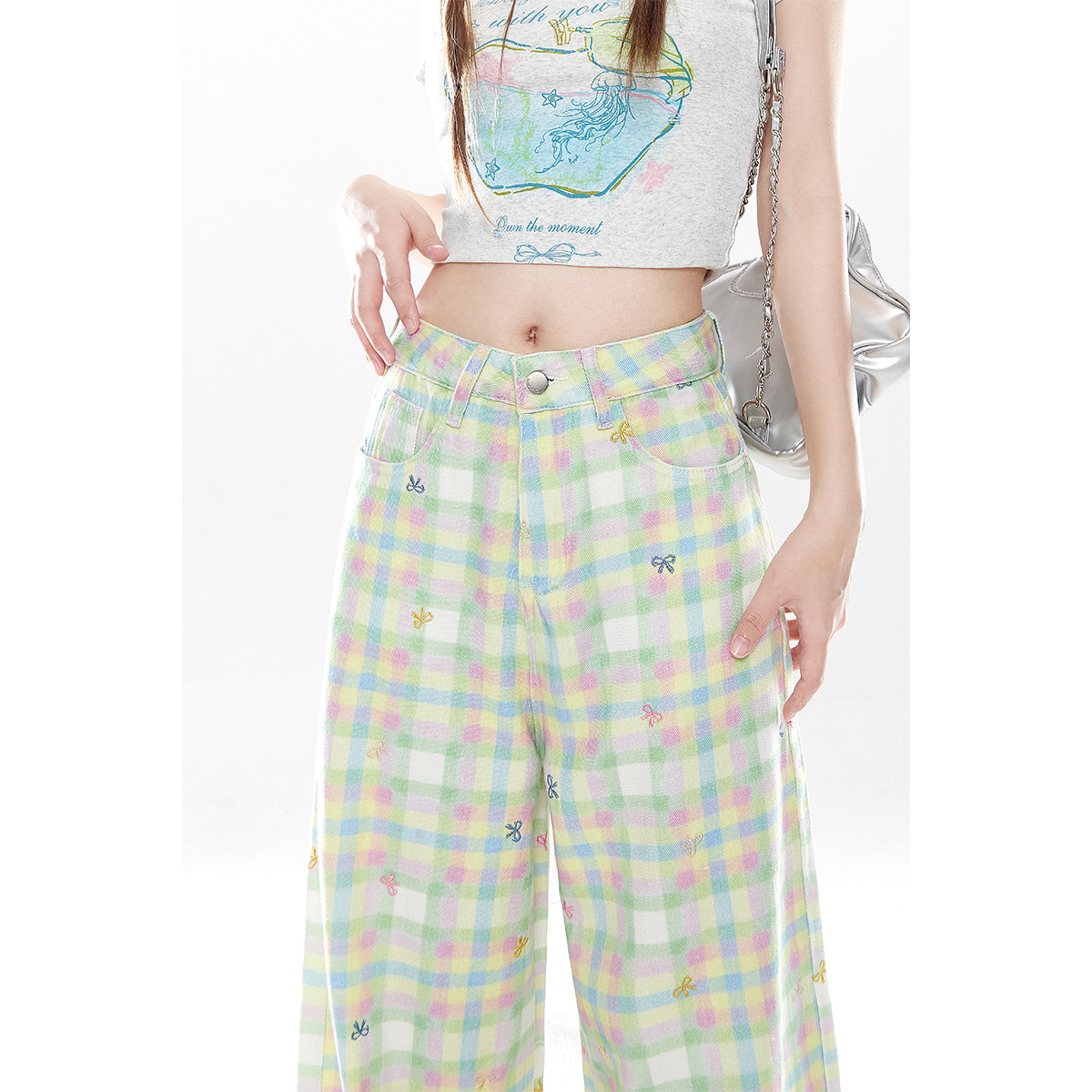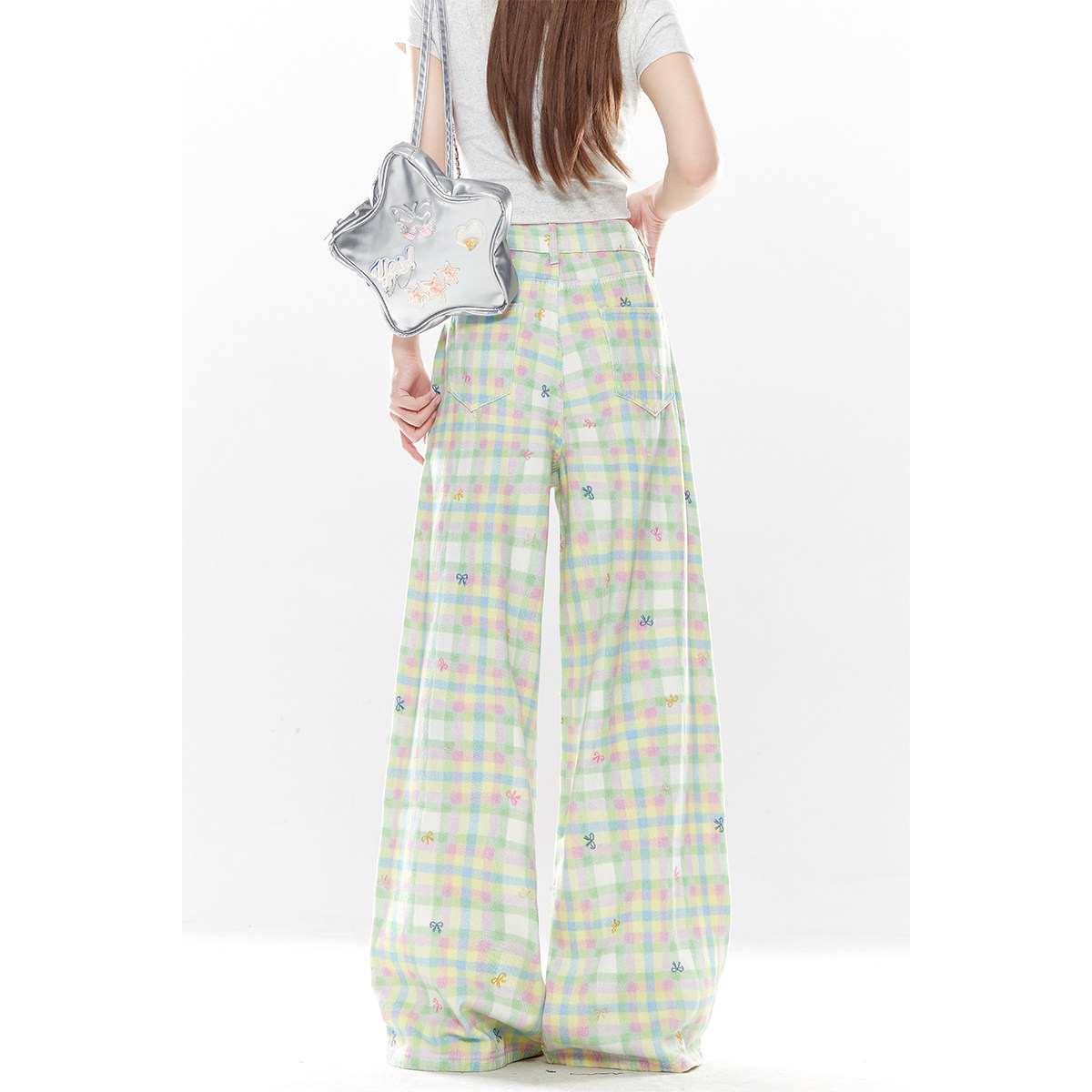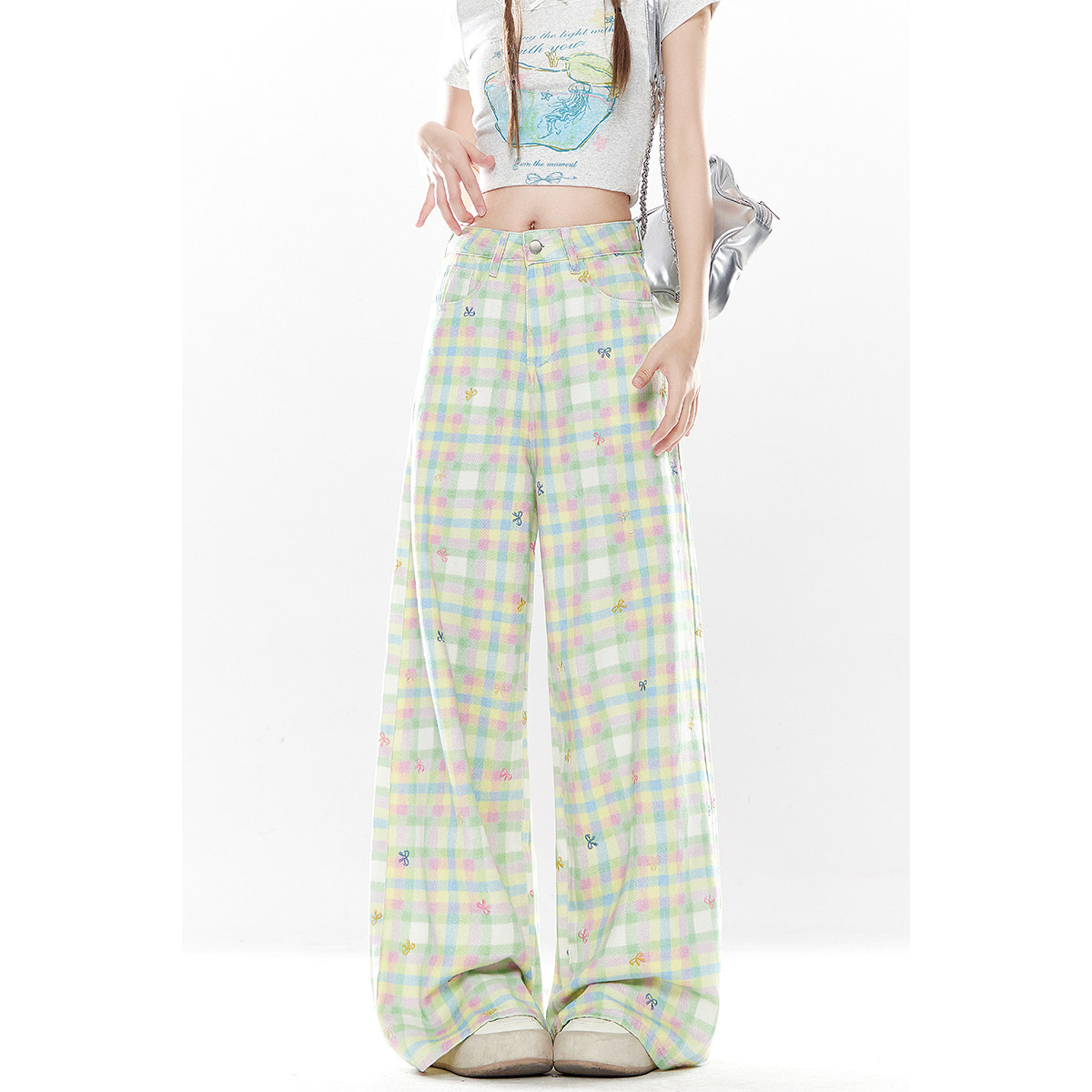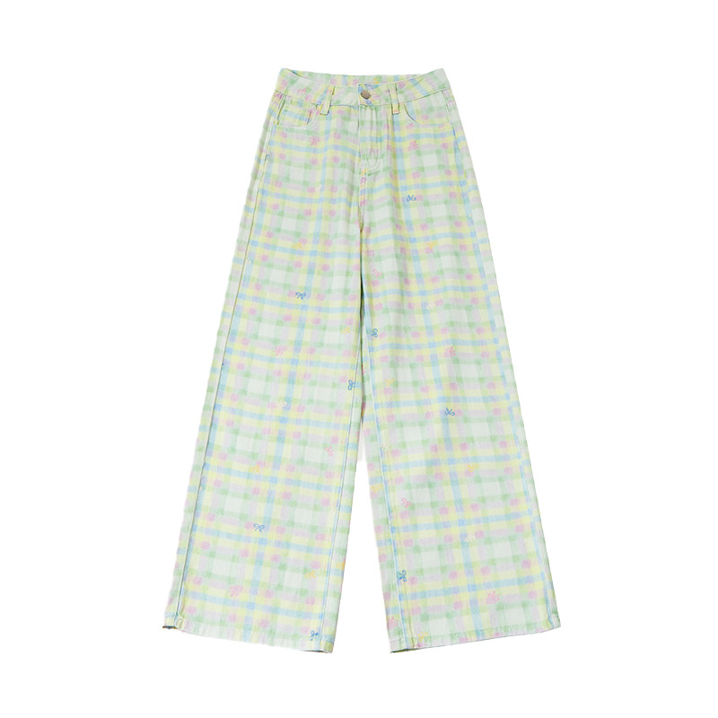 自然涩多巴胺穿搭绿色格子裤女款夏季新款巨好看百搭的休闲长裤子