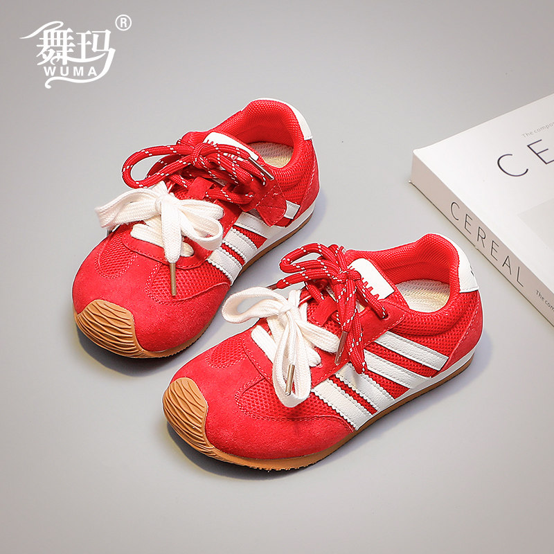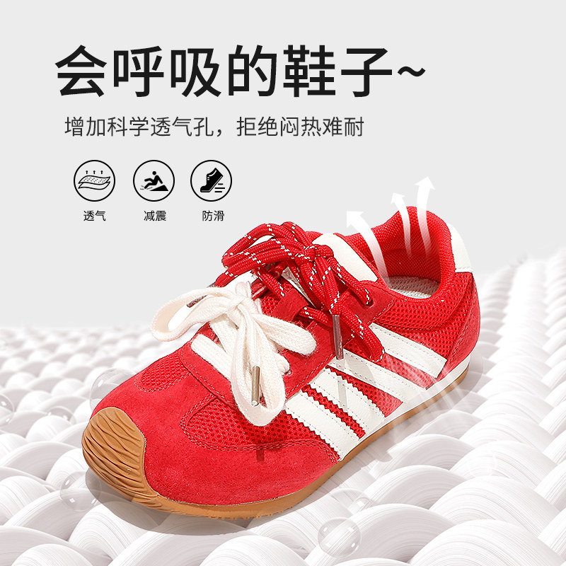 舞玛儿童红色复古阿甘鞋2026春秋季新款男女童网面透气防滑运动鞋