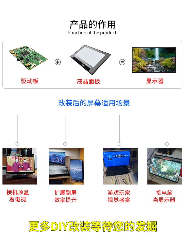 笔记本屏幕驱动板套件diy改装成便携显示器usb供电高清hdmi一线通