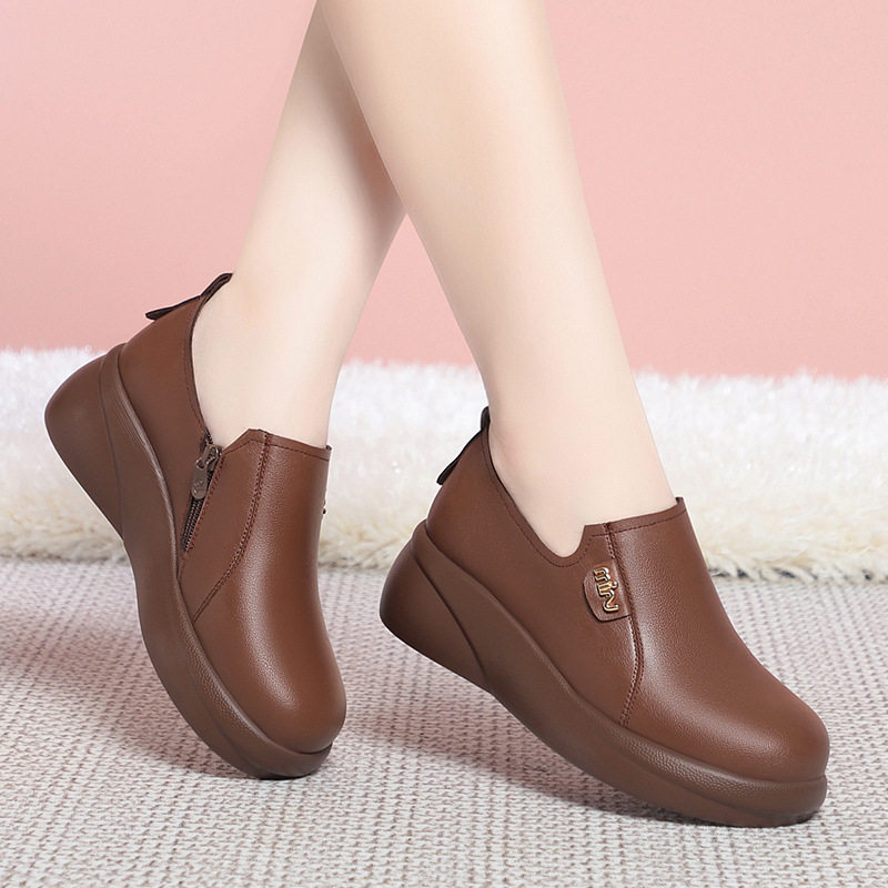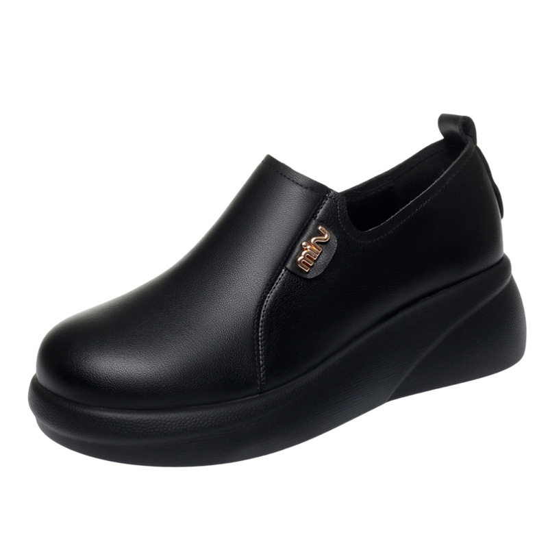 皮鞋女厚底单鞋春秋款女鞋百搭软底松糕鞋舒适中年妈妈鞋一件代发