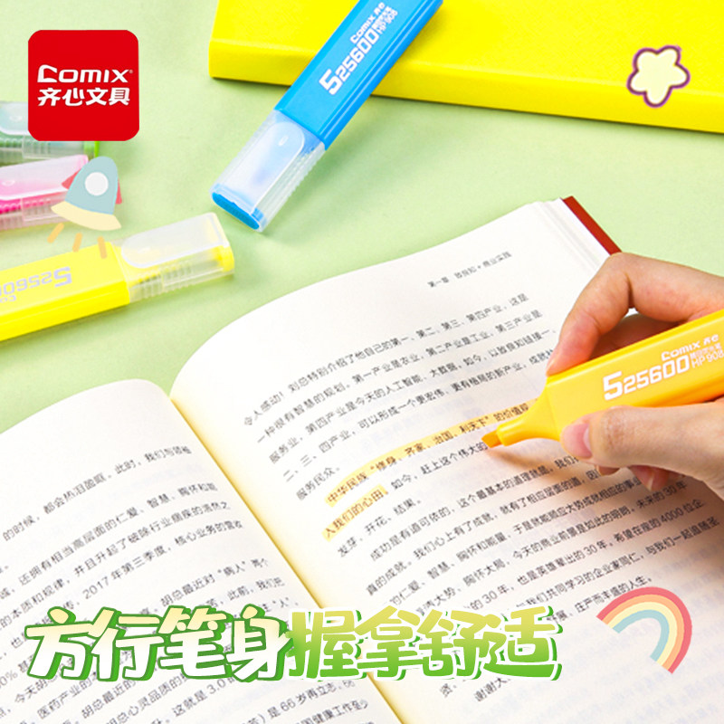 齐心荧光标记笔笔划重点初中生专用荧光学生用记号笔色彩色小学手抄报手账笔笔记重点绿色紫色红色蓝色橙色