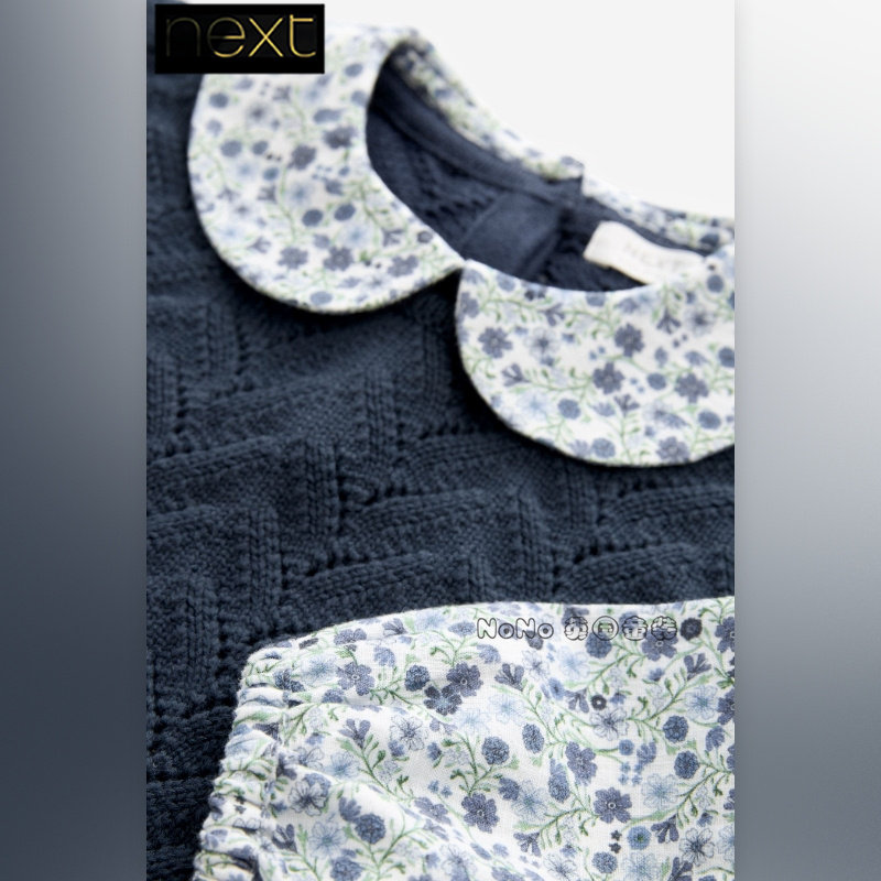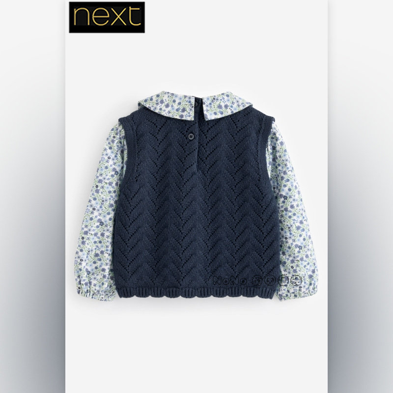 现货英国Next正品女童蓝色针织马甲背心毛衣毛衫假两件Q87-913