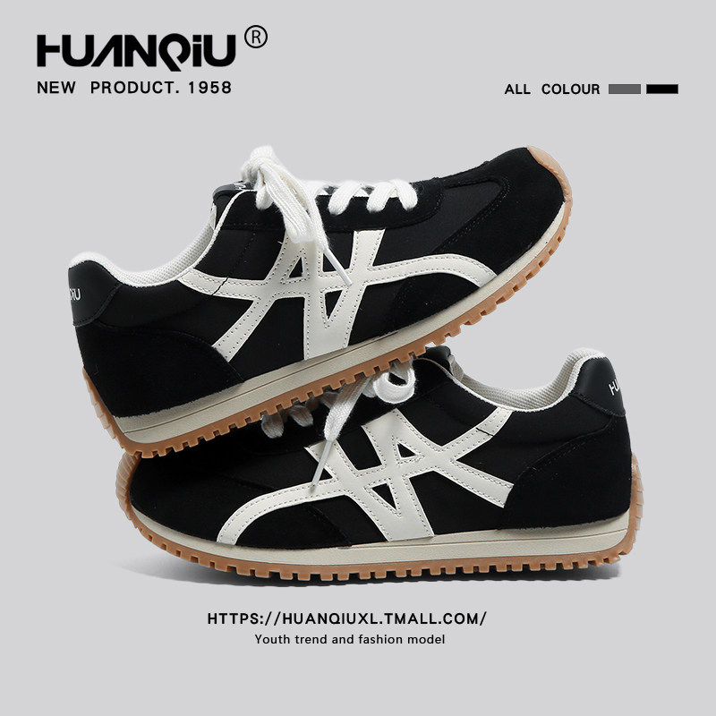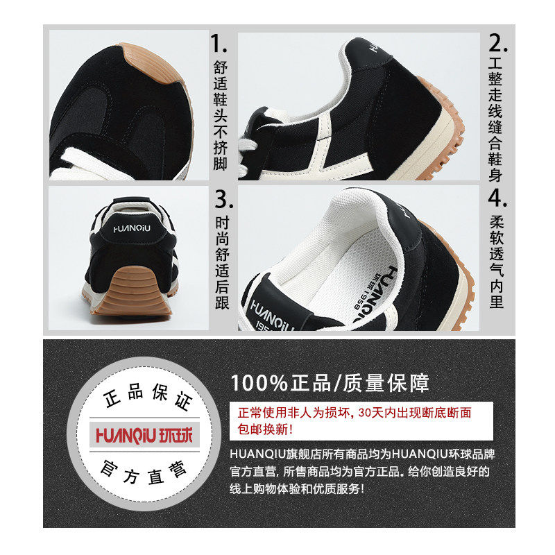 环球黑色德训鞋女款2026春季新款超火厚底内增高阿甘鞋休闲运动鞋