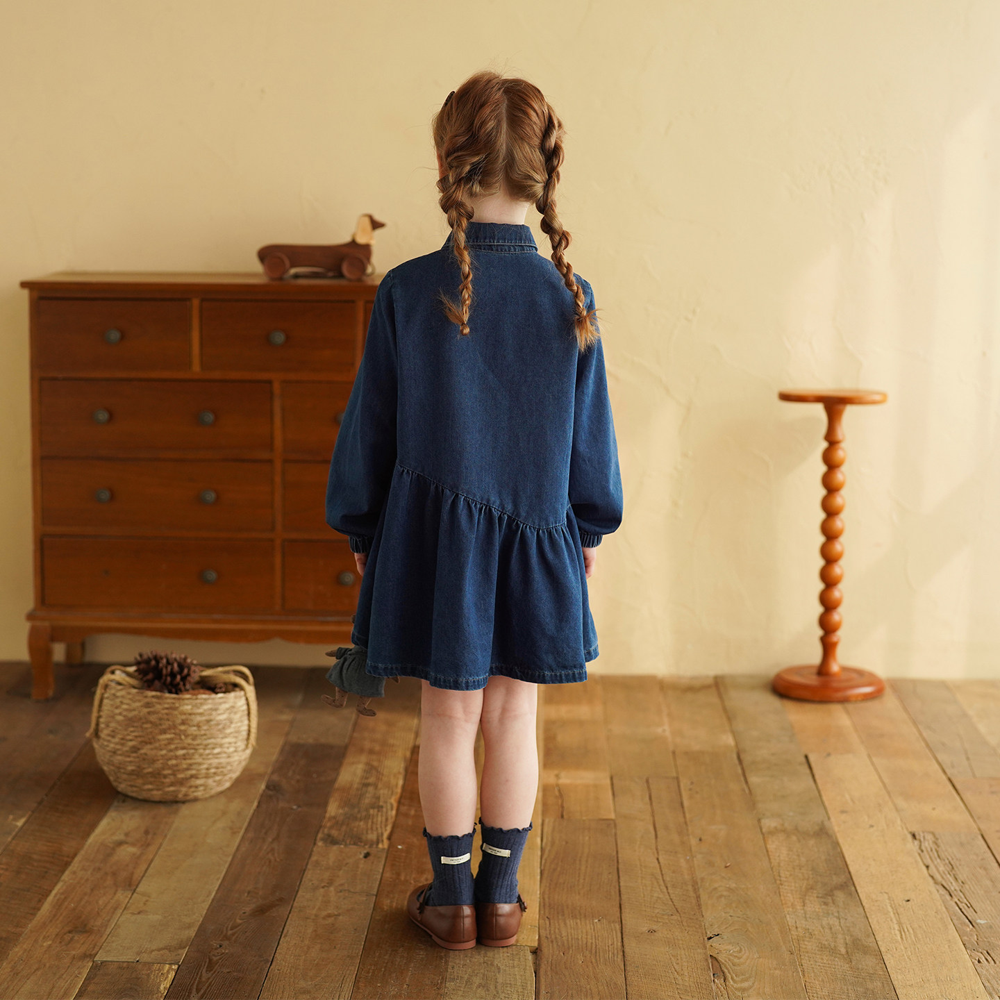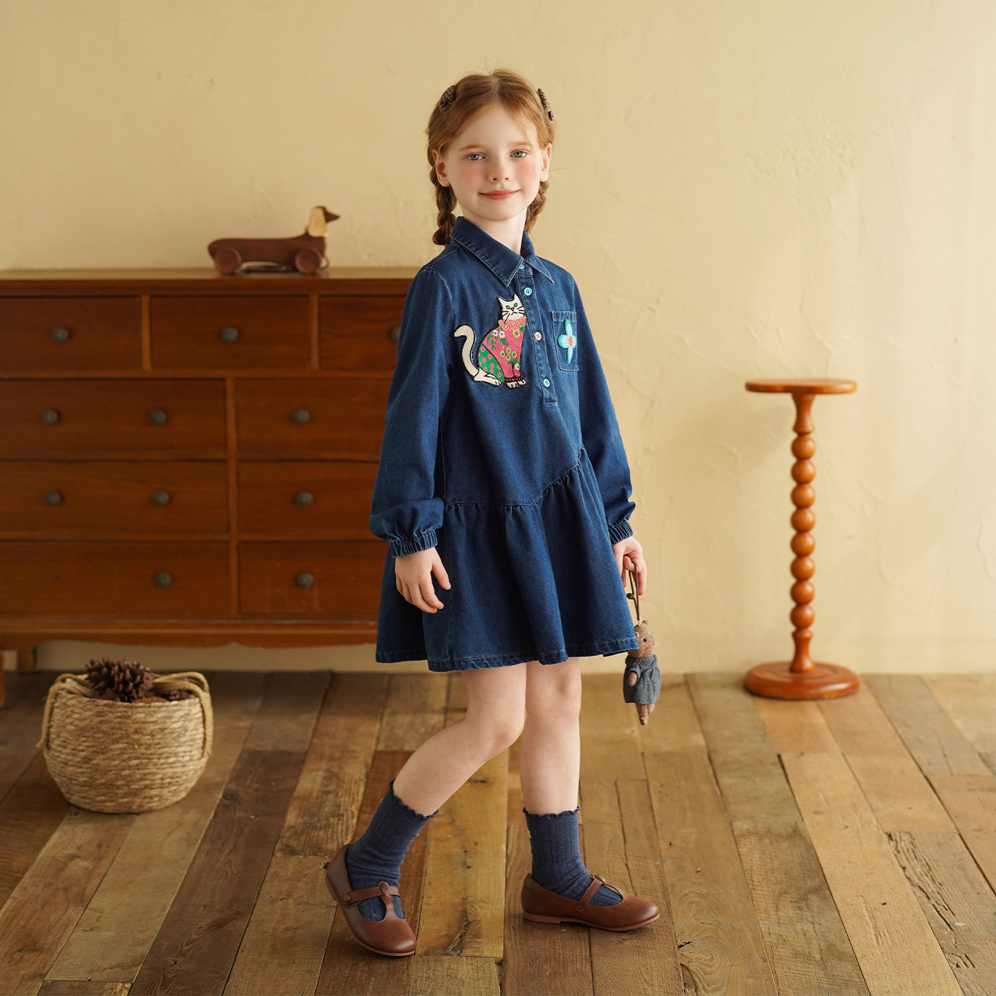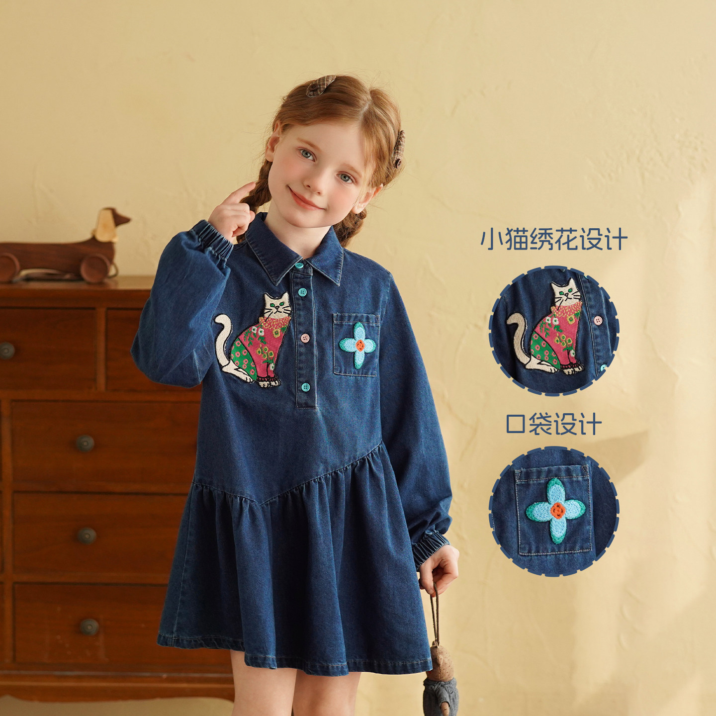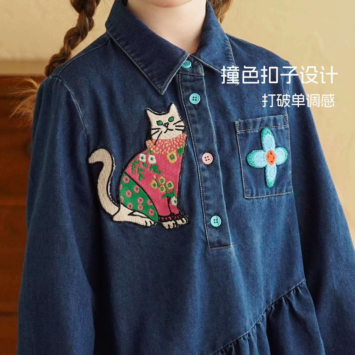 砚台家女童牛仔连衣裙2026春装新款女宝宝刺绣洋气春季长袖衬衫裙
