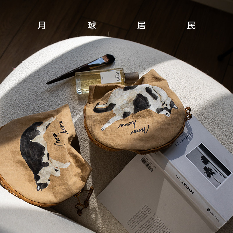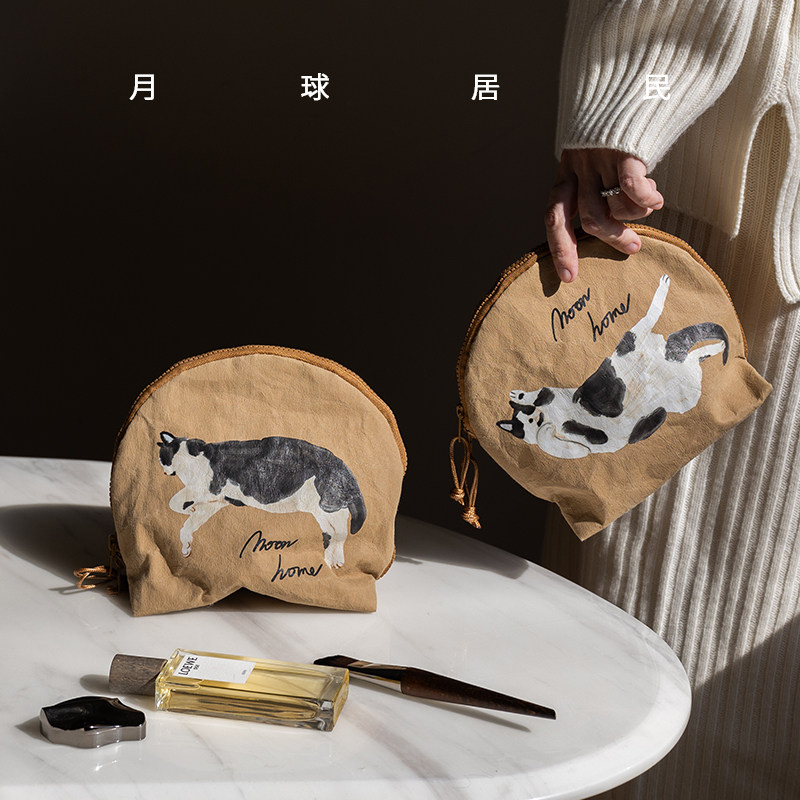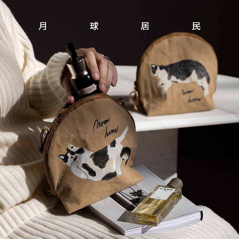 【月球居民】猫咪山丘 原创手绘防水牛皮纸收纳袋化妆包旅行洗漱