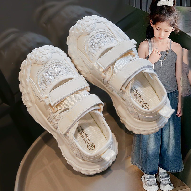 女童鞋网面运动鞋包头凉鞋2026夏季新款中大童软底时尚单网老爹鞋