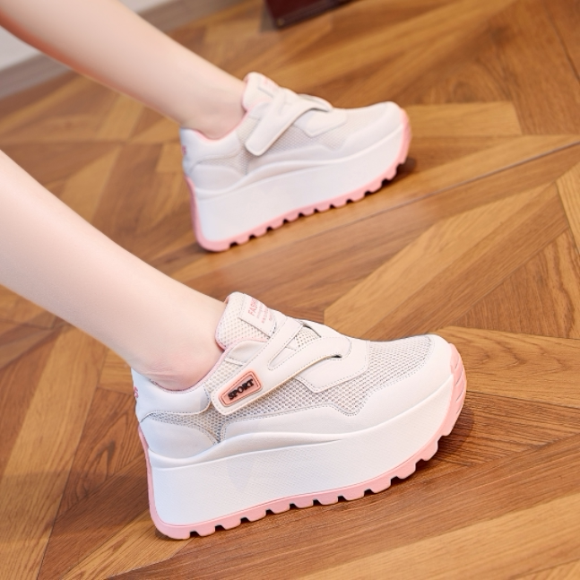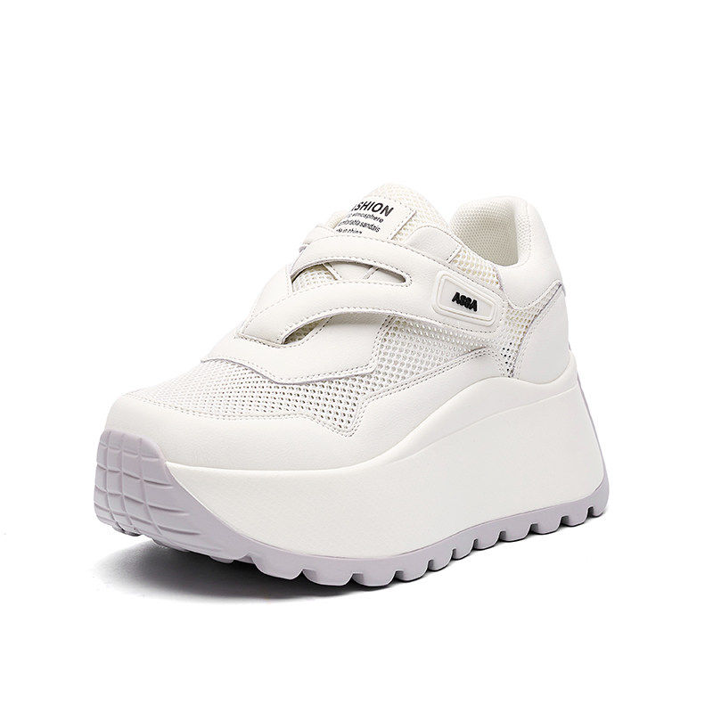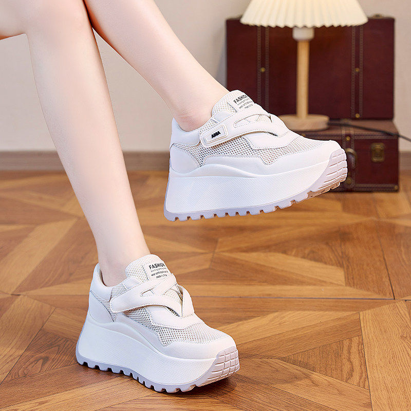 爆款真皮内增高小白鞋女夏薄款网纱鞋运动休闲透气网面厚底老爹鞋