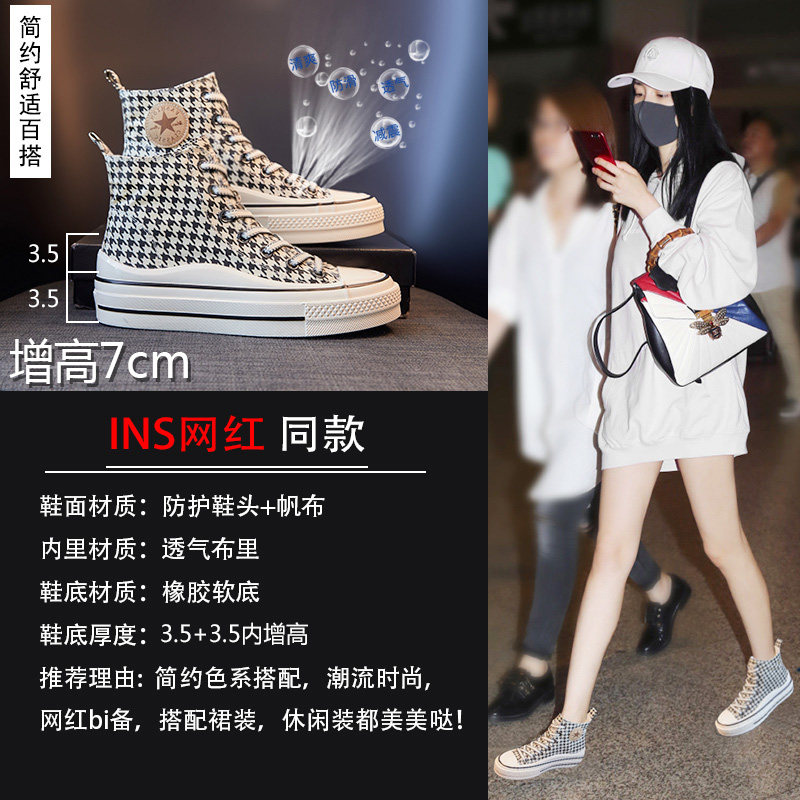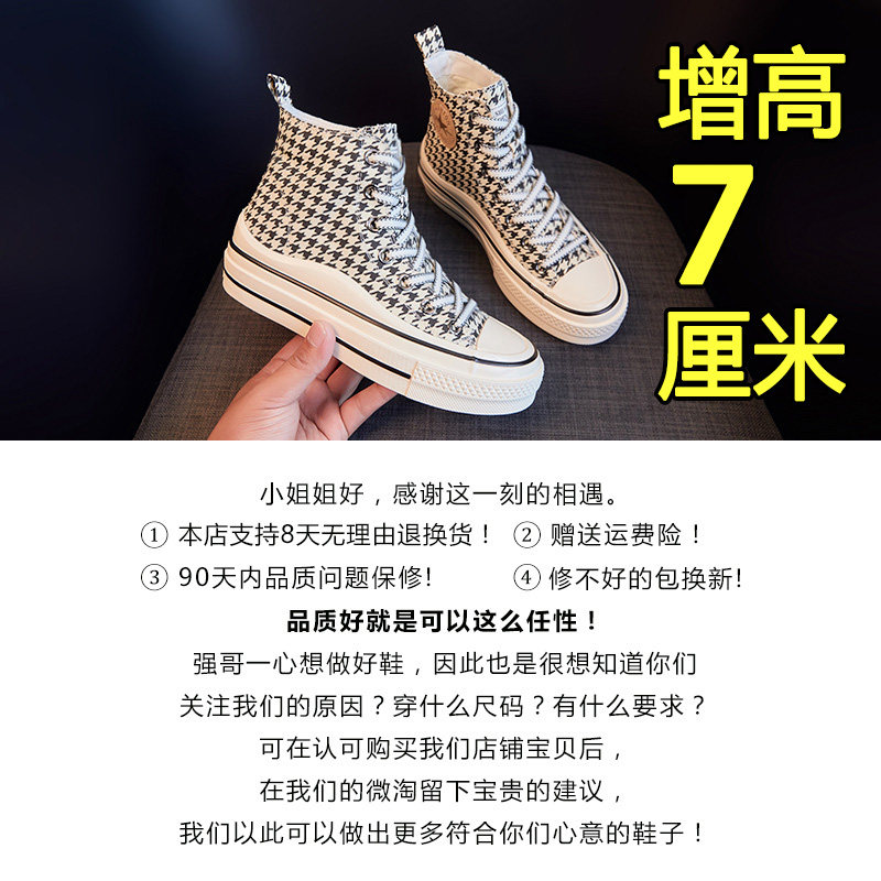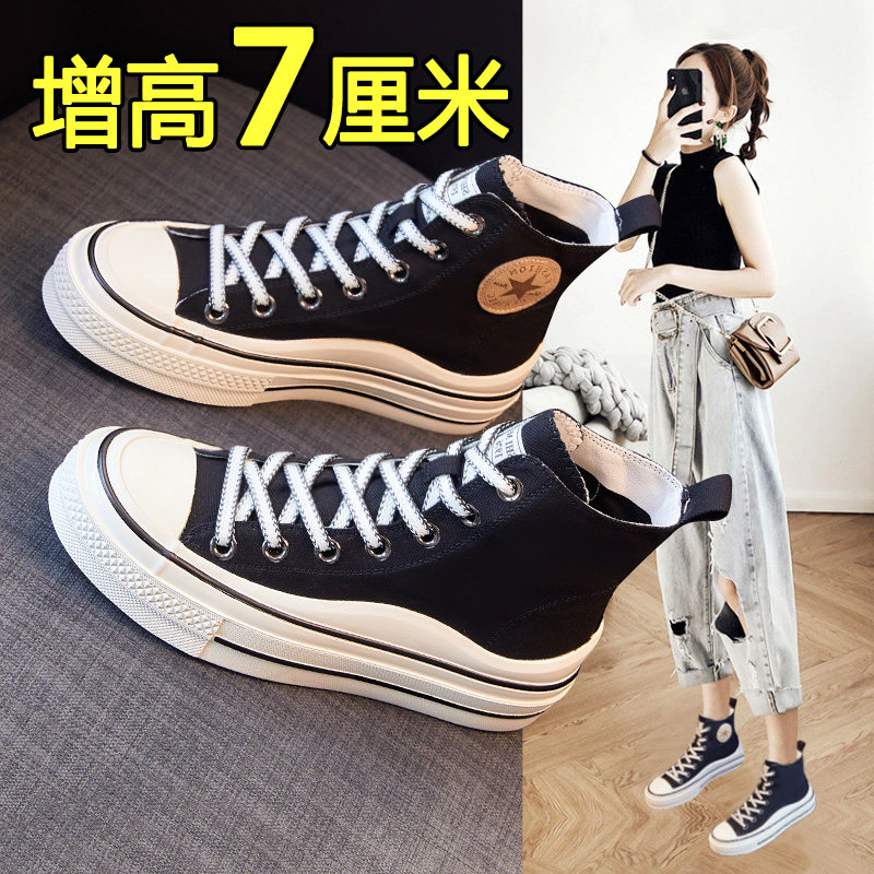 高帮帆布鞋女2022年秋冬新款厚底内增高休闲百搭板鞋ins潮小白鞋
