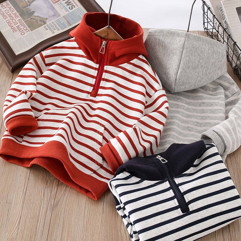 男童卫衣春秋2026新款儿童连帽男孩休闲条纹宝宝韩版上衣春装带帽