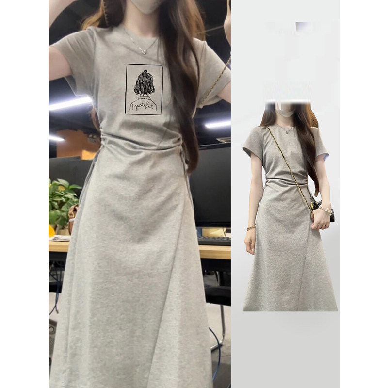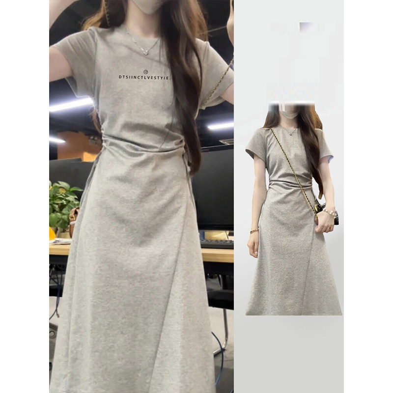 2024年新款小个子法式短袖连衣裙子女夏季气质高级感休闲收腰长裙