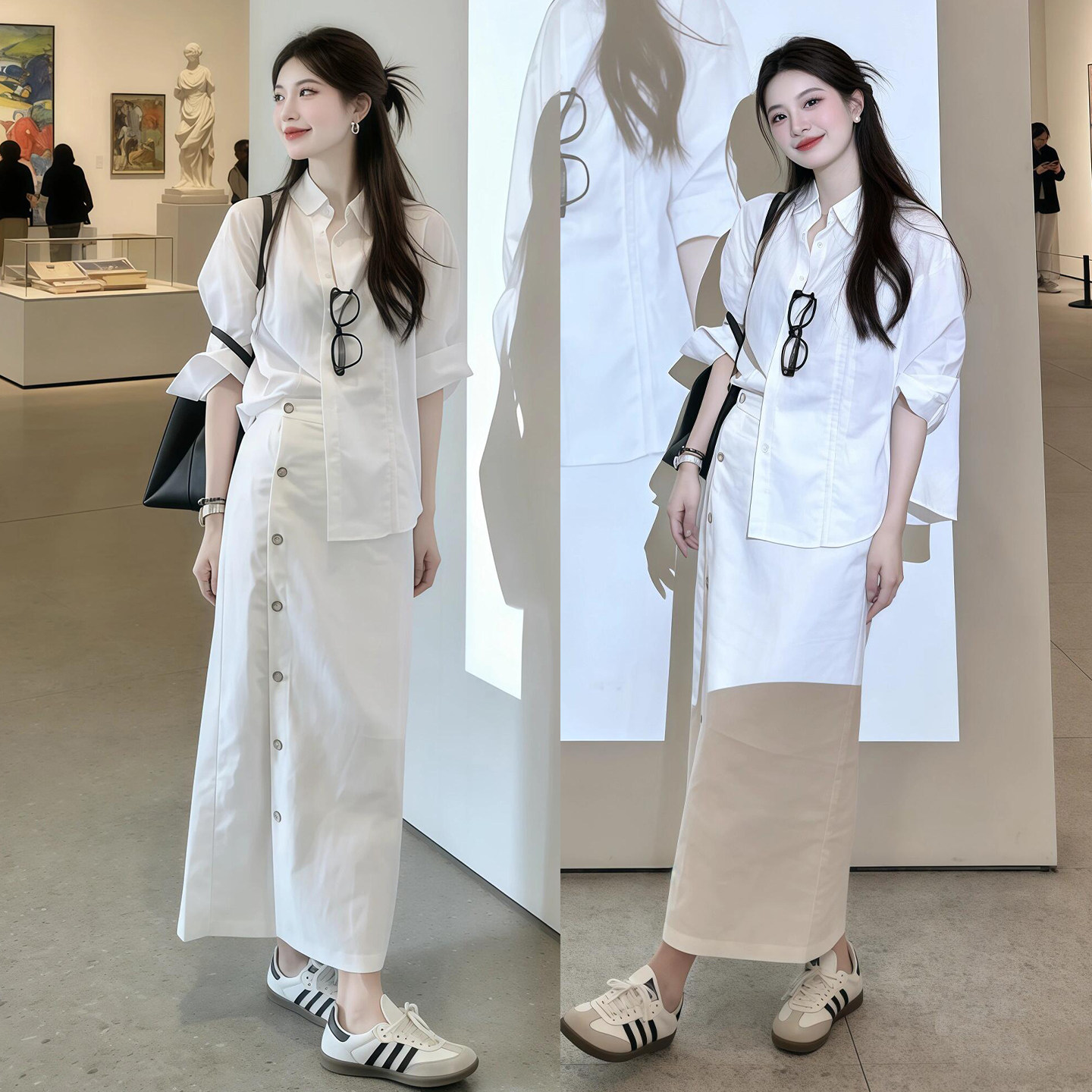 早春季2026新款白色衬衫连衣裙子女巨好看韩系穿搭一整套长裙套装