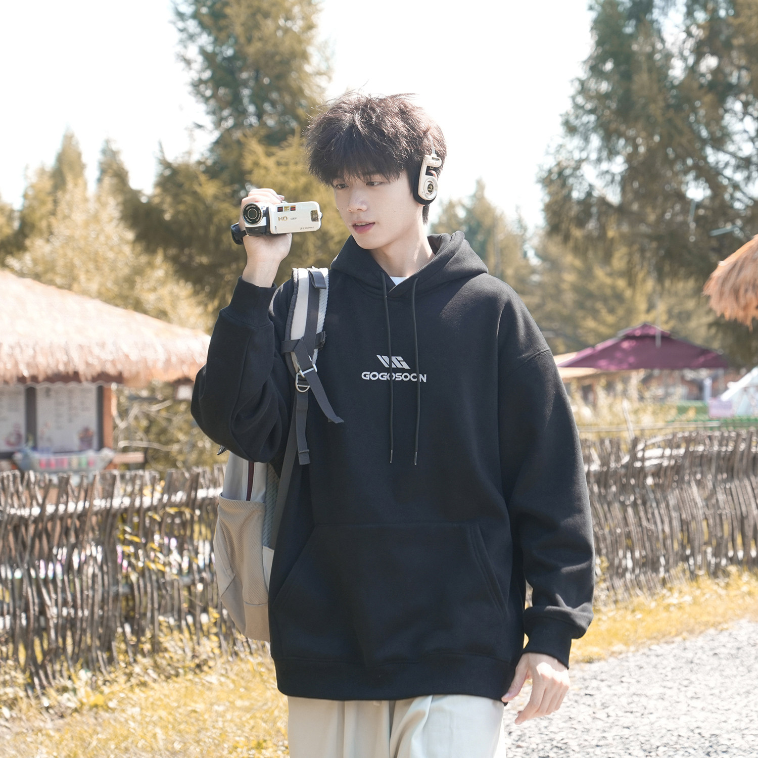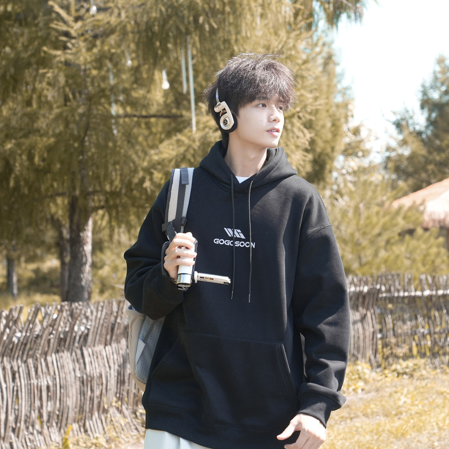 GOGOSOON加绒连帽卫衣男430g新款2025秋冬休闲青少年带帽宽松百搭