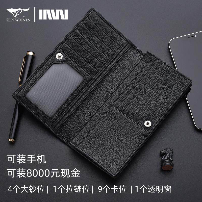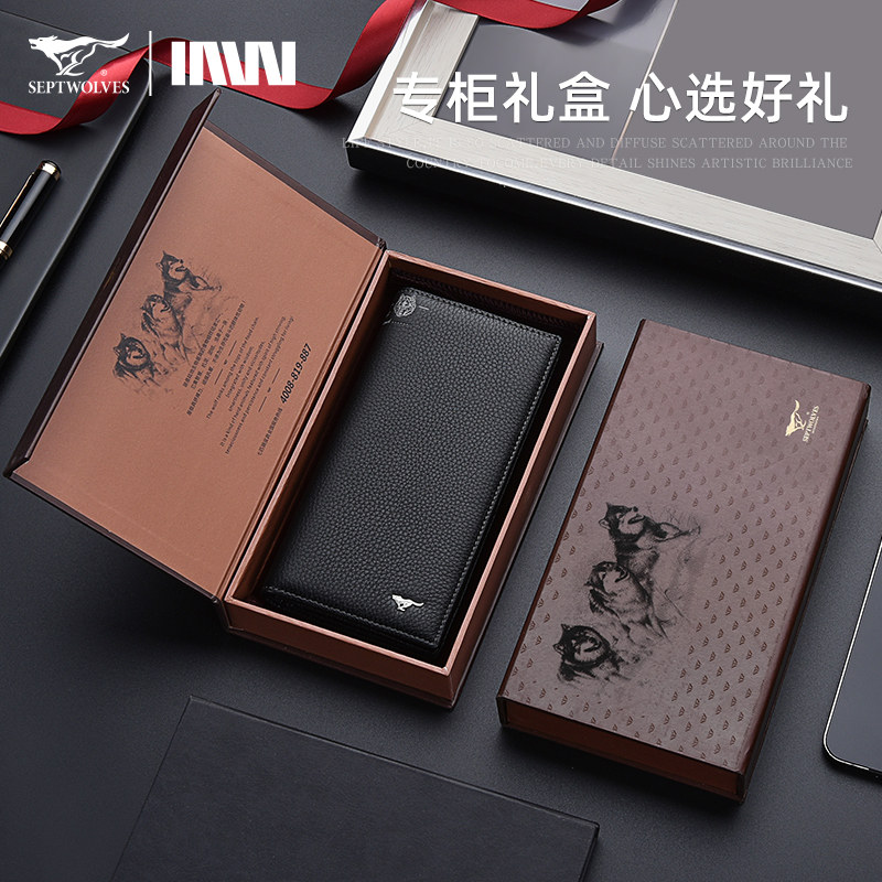 七匹狼男士真皮正品长款钱包头层牛皮2024新款生日礼物送老公长夹