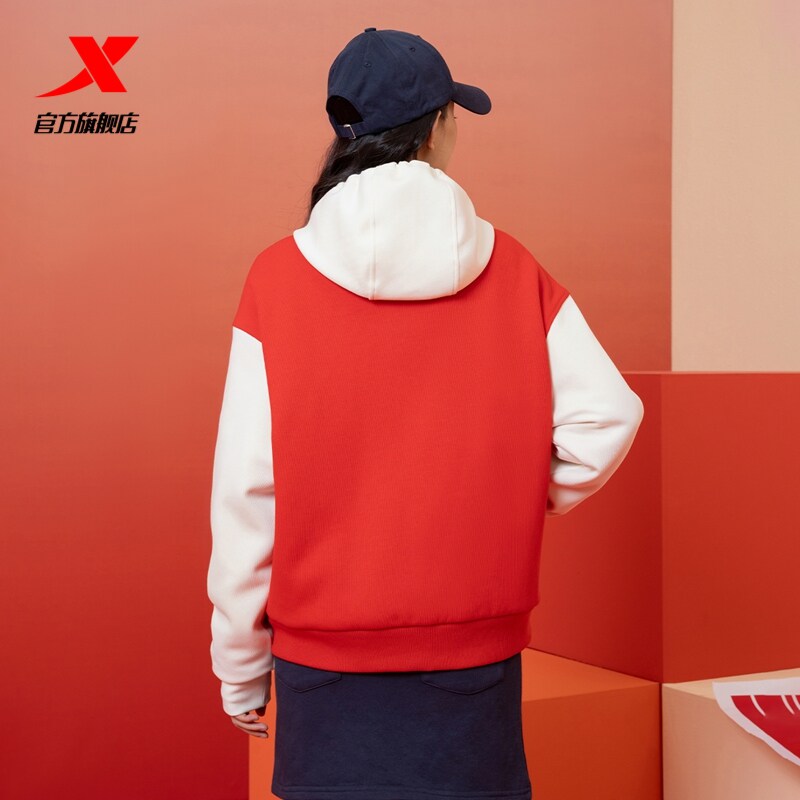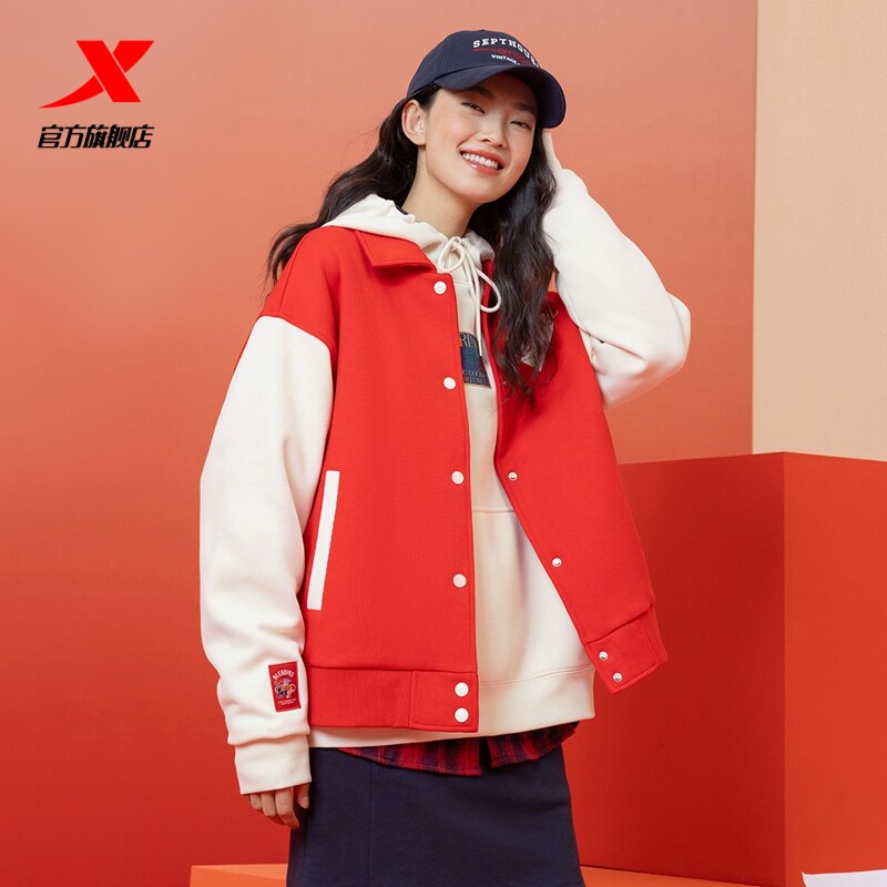 特步新年丨针织外套女款2026年新款春季红色茄克上衣975128060476