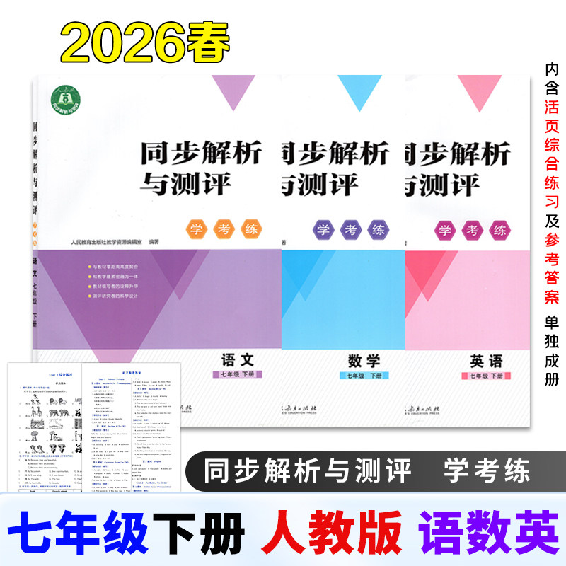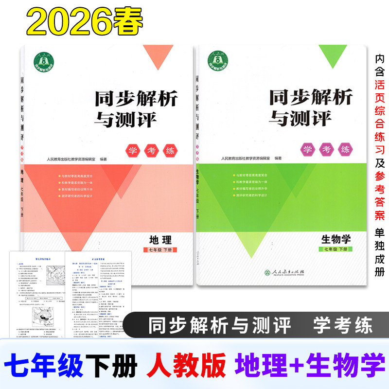 2026春新版同步解析与测评学考练人教版初中七年级下册语文数学英语道法历史地理生物学同步课本含综合练习参考答案单独成册人教版