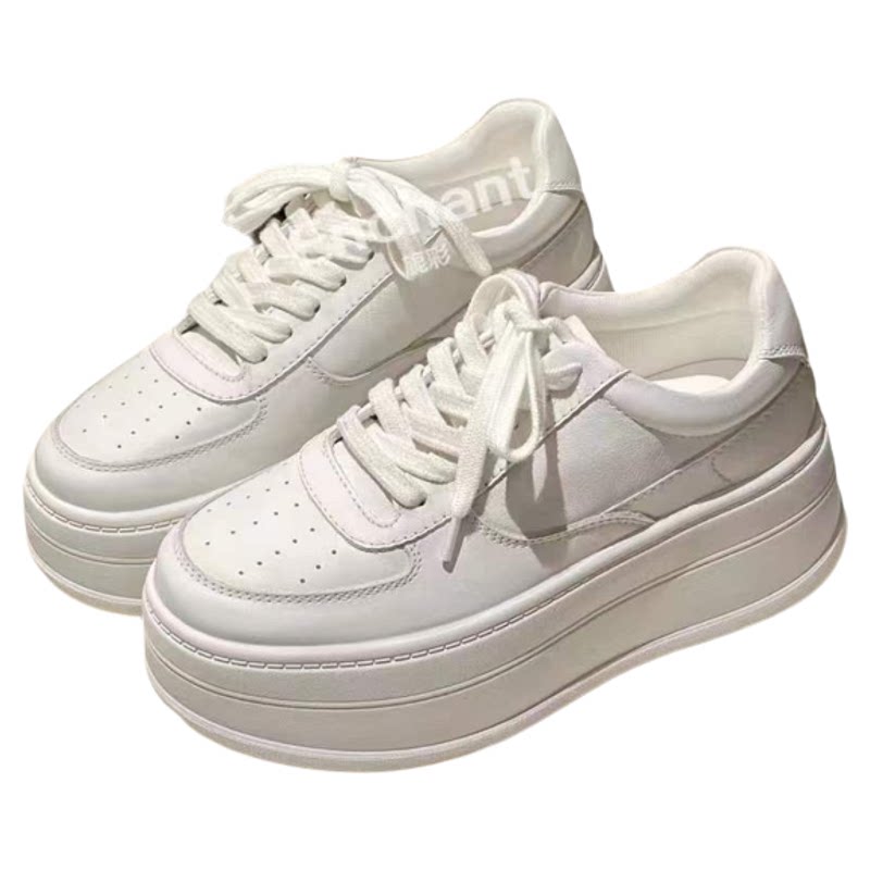 欧货旎彩鞋子女2026新款春季头层牛皮小白鞋女厚底松糕鞋配阔腿裤