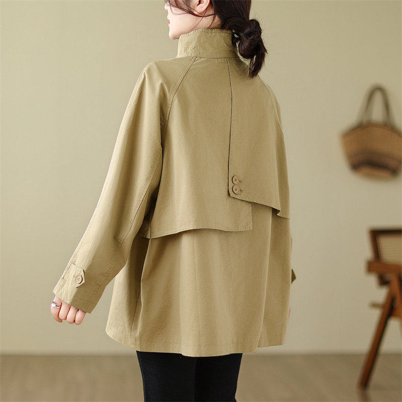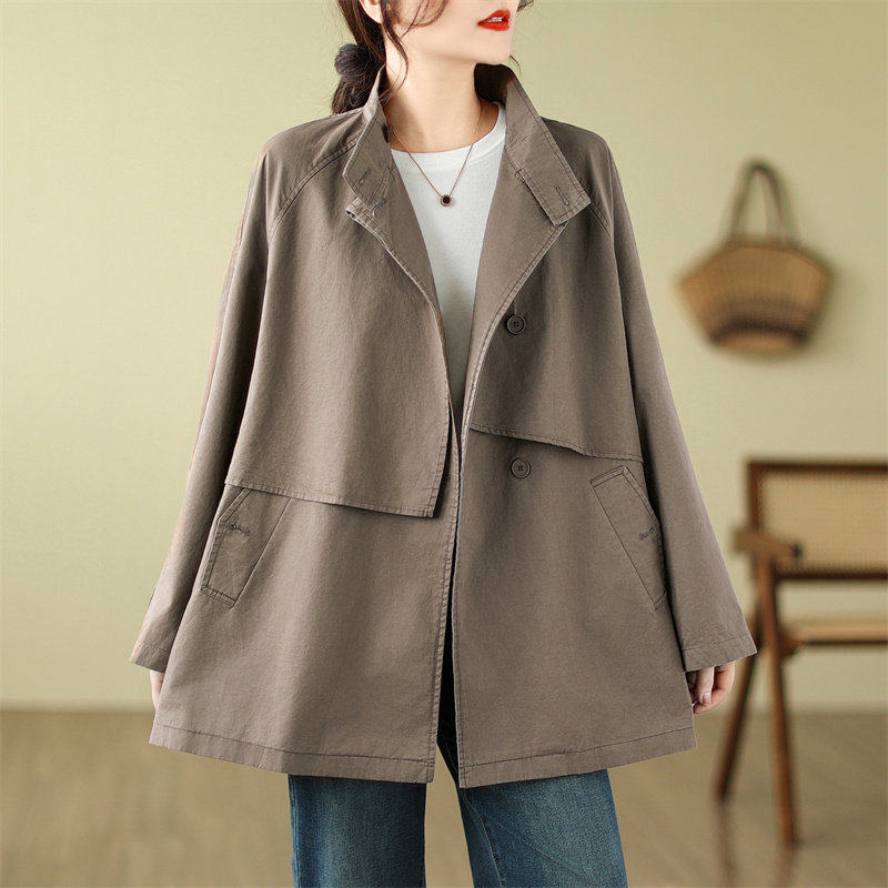 复古风衣女款2026新款春秋韩版大码女装立领中长款高级感宽松外套
