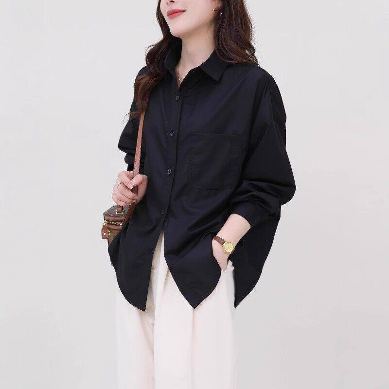高级感轻奢洋派黑色衬衫女款上衣2026早春装新款宽松休闲长袖衬衫