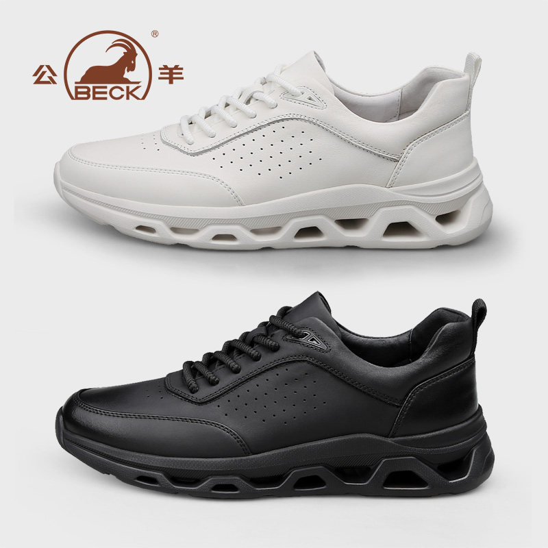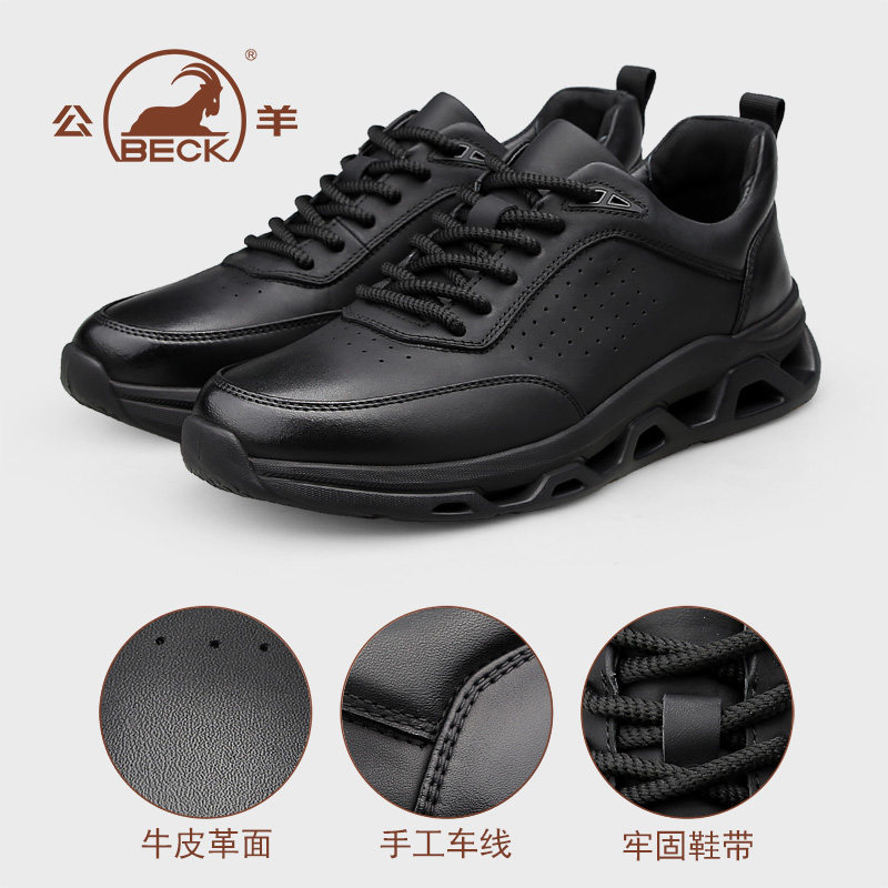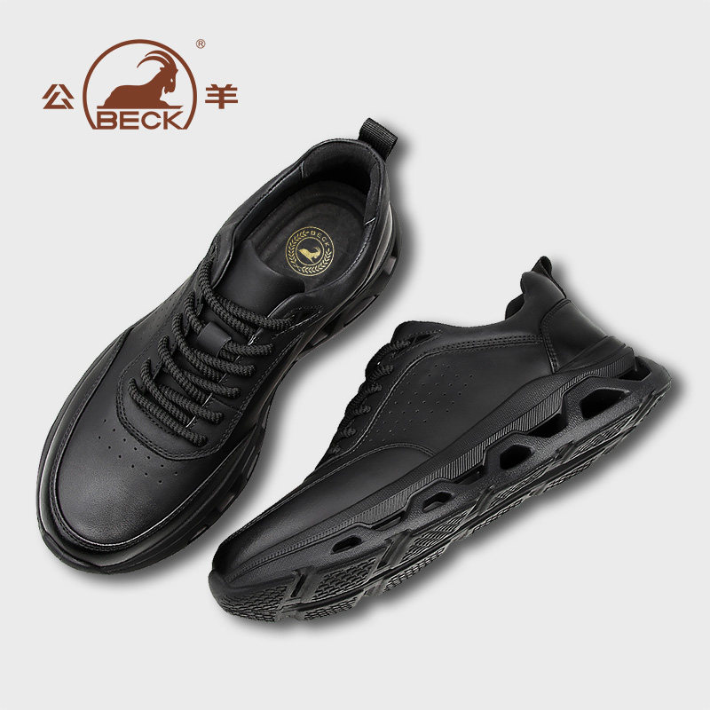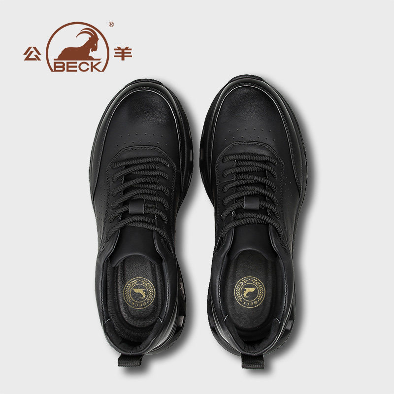 公羊男鞋2026春季新款板鞋休闲皮鞋真皮百搭黑武士增高男款鞋子