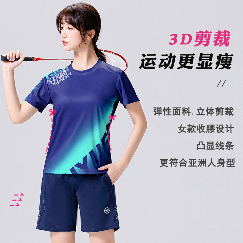 速干羽毛球服套装女网球乒乓球衣圆领男款夏季短袖团队运动服定制