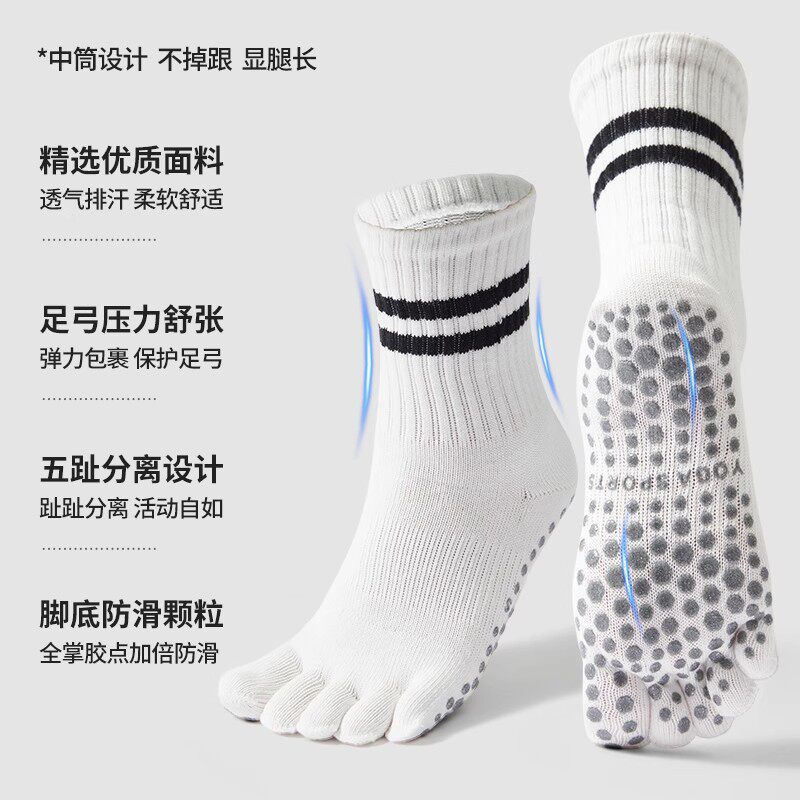 秋冬瑜伽袜子防滑专业女普拉提专用袜中长筒室内运动健身训练分趾