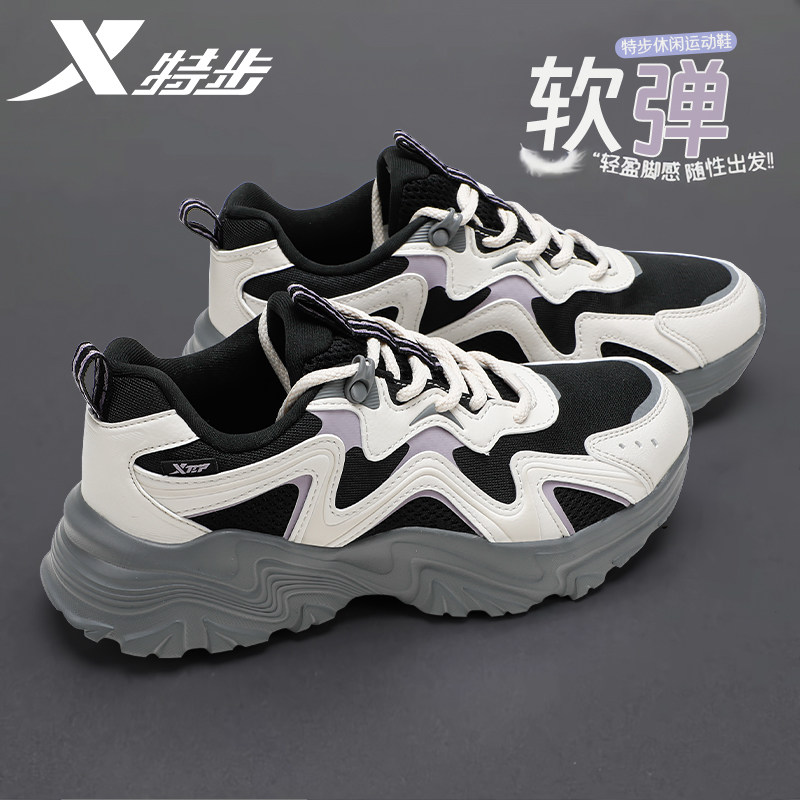 特步老爹鞋女鞋2026秋冬新款轻便厚底增高网面透气运动休闲鞋子