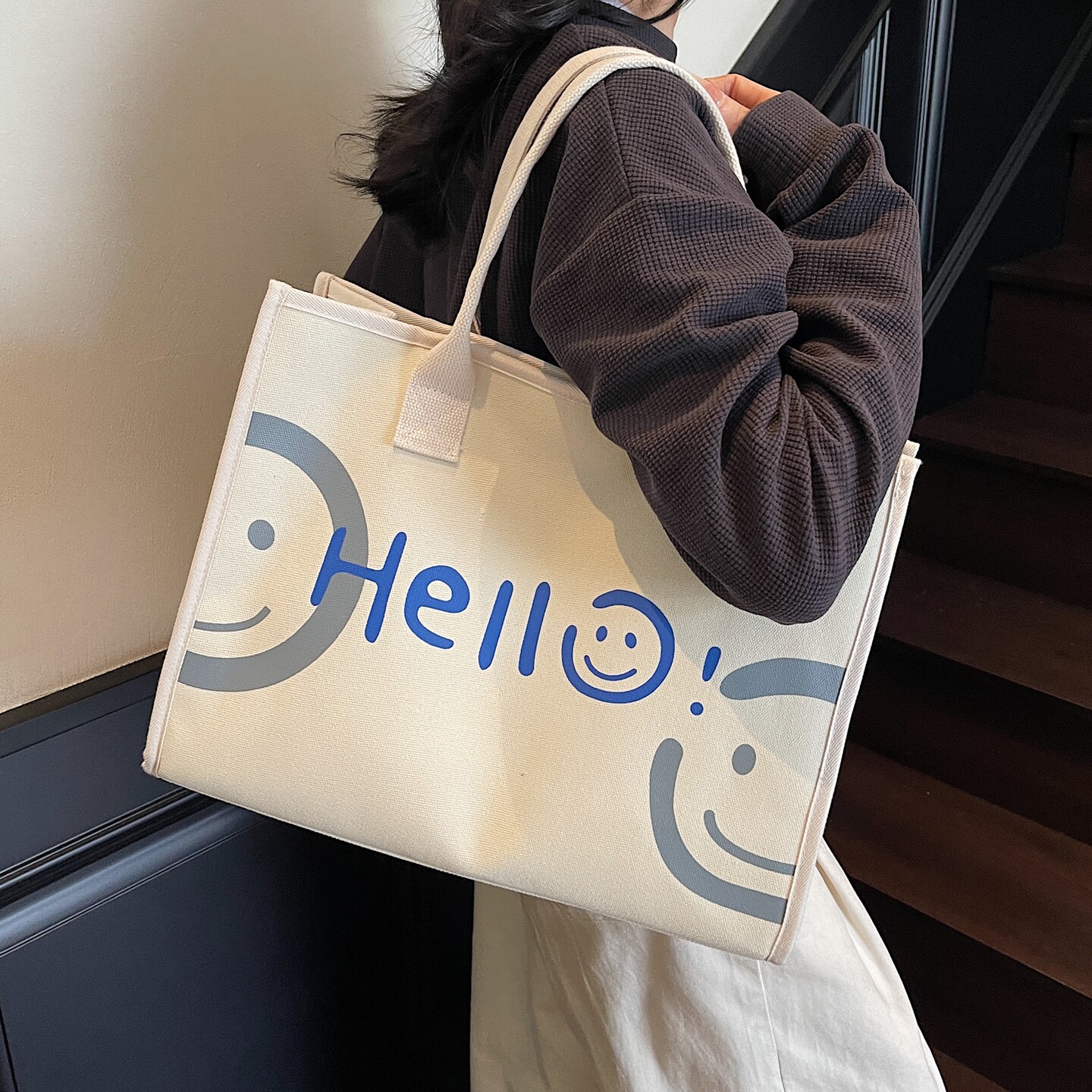 休闲大包包女士2026新款大容量帆布托特包学生上班通勤单肩手提袋