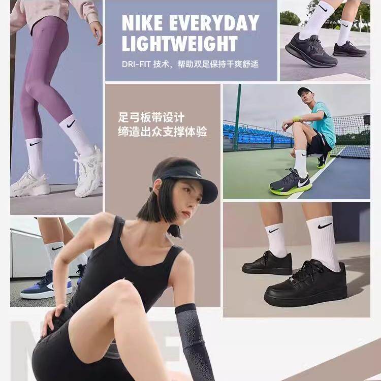 NIKE正品耐克袜子男女休闲运动袜中筒高筒防滑训练袜三双装SX7676