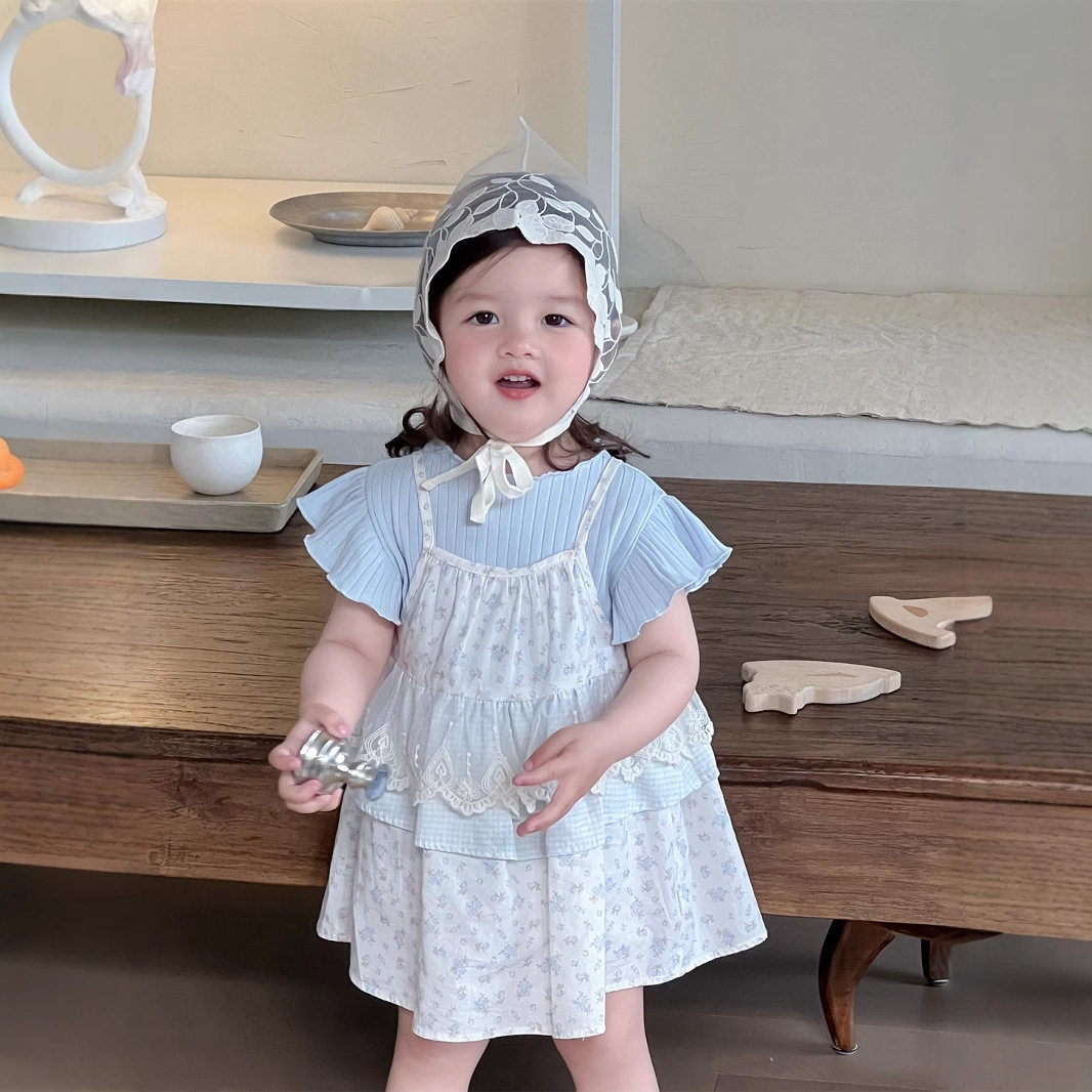 童装女夏套装薄款2025韩版女童裙子套装宝宝衣服夏款短袖T吊带裙