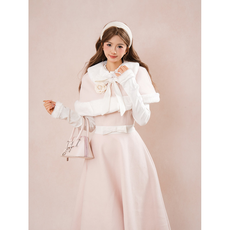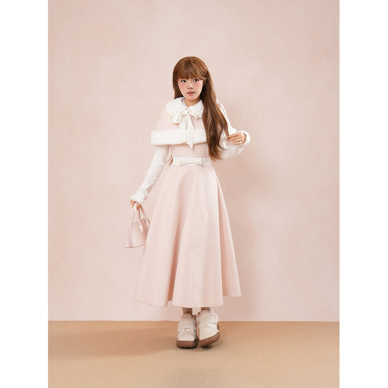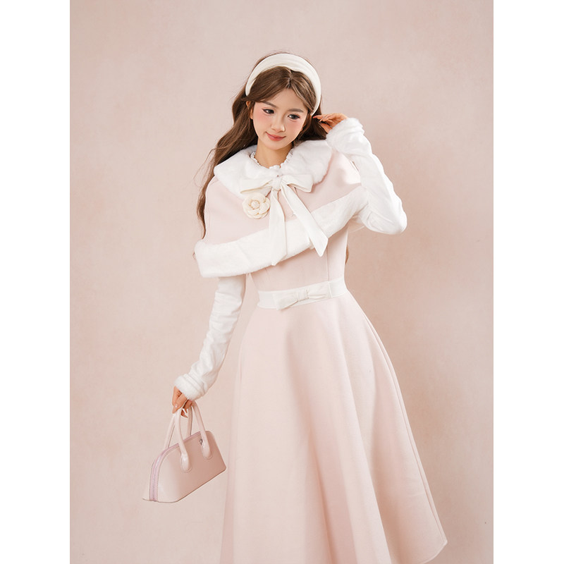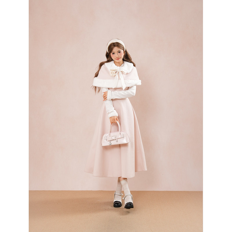 【冬日千金】小个子氛围感公主风长袖假两件连衣裙+斗篷两件套装