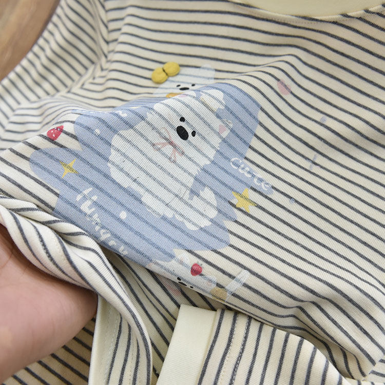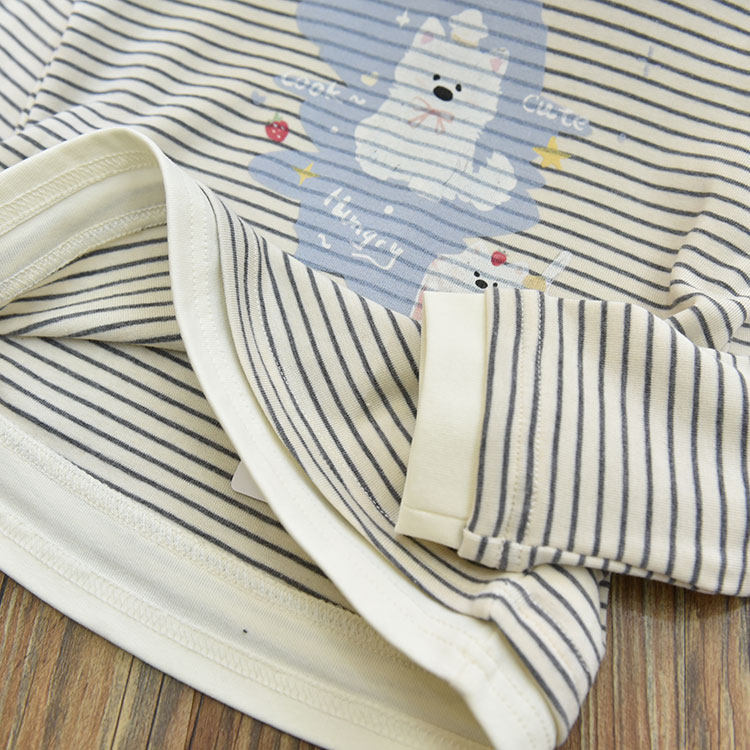 女童洋气条纹小熊正肩修身打底衫中大儿童百搭长袖T恤上衣2026春