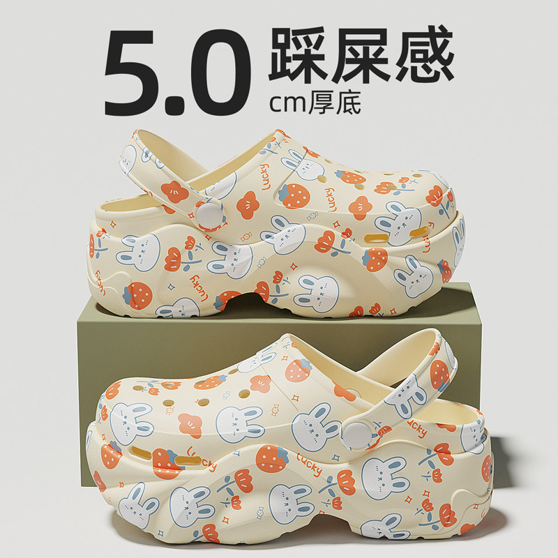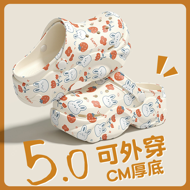 厚底洞洞鞋女款外穿夏季2026新款海边沙滩防滑包头增高凉拖鞋夏天