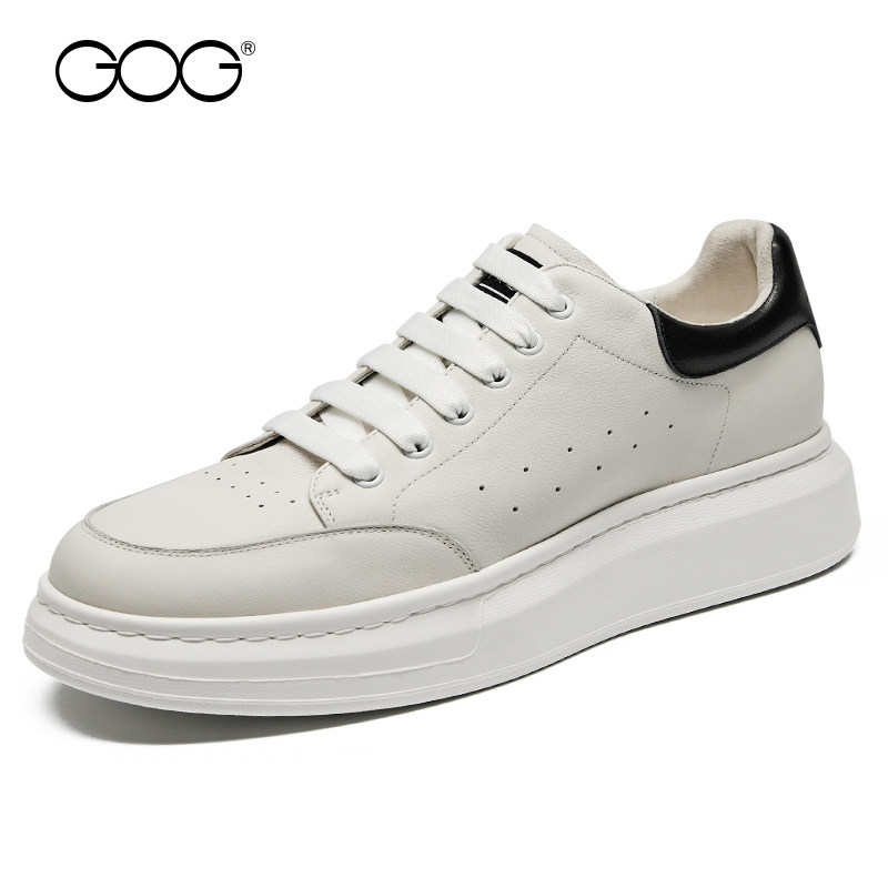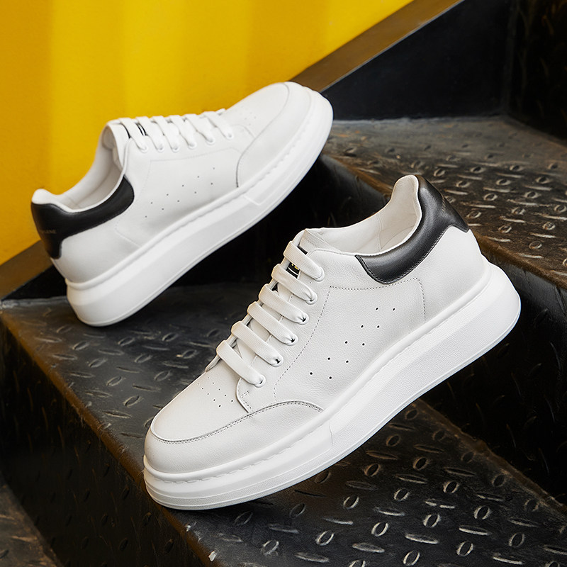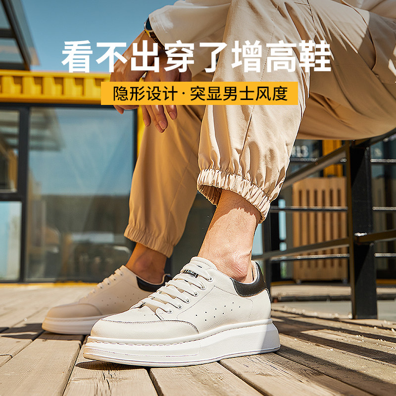 高哥增高鞋男款春季新款麦坤小白鞋情侣真皮板鞋内增高休闲鞋子男