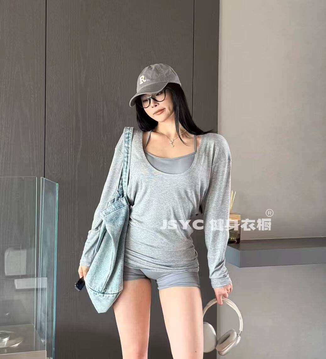 大U领运动罩衫女遮屁股慵懒宽松休闲普拉提蝙蝠袖长袖瑜伽服上衣