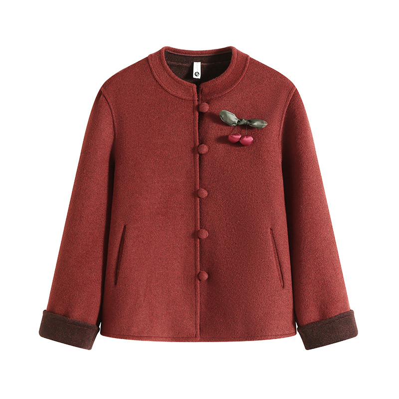 新中式妈妈春装双面呢外套2026新款时尚中老年女春秋短款毛呢大衣
