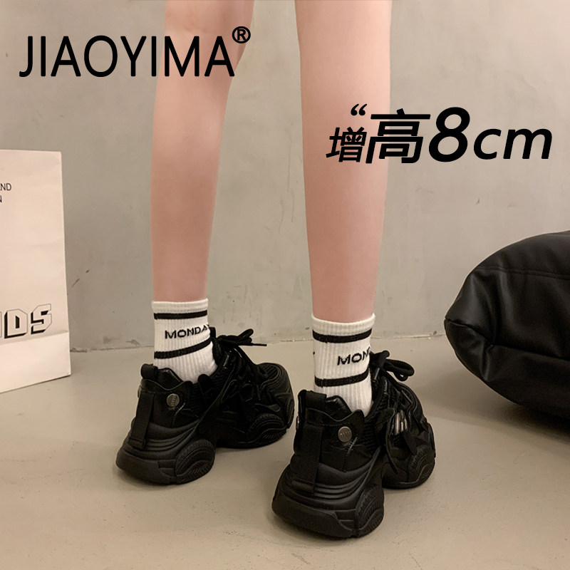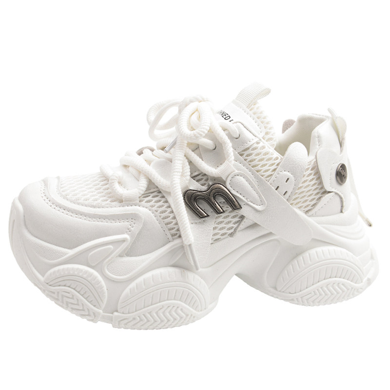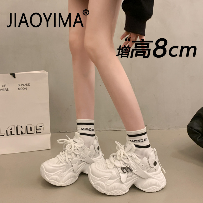 8cm内增高小白鞋女款2026新款百搭松糕休闲运动鞋网面厚底老爹鞋